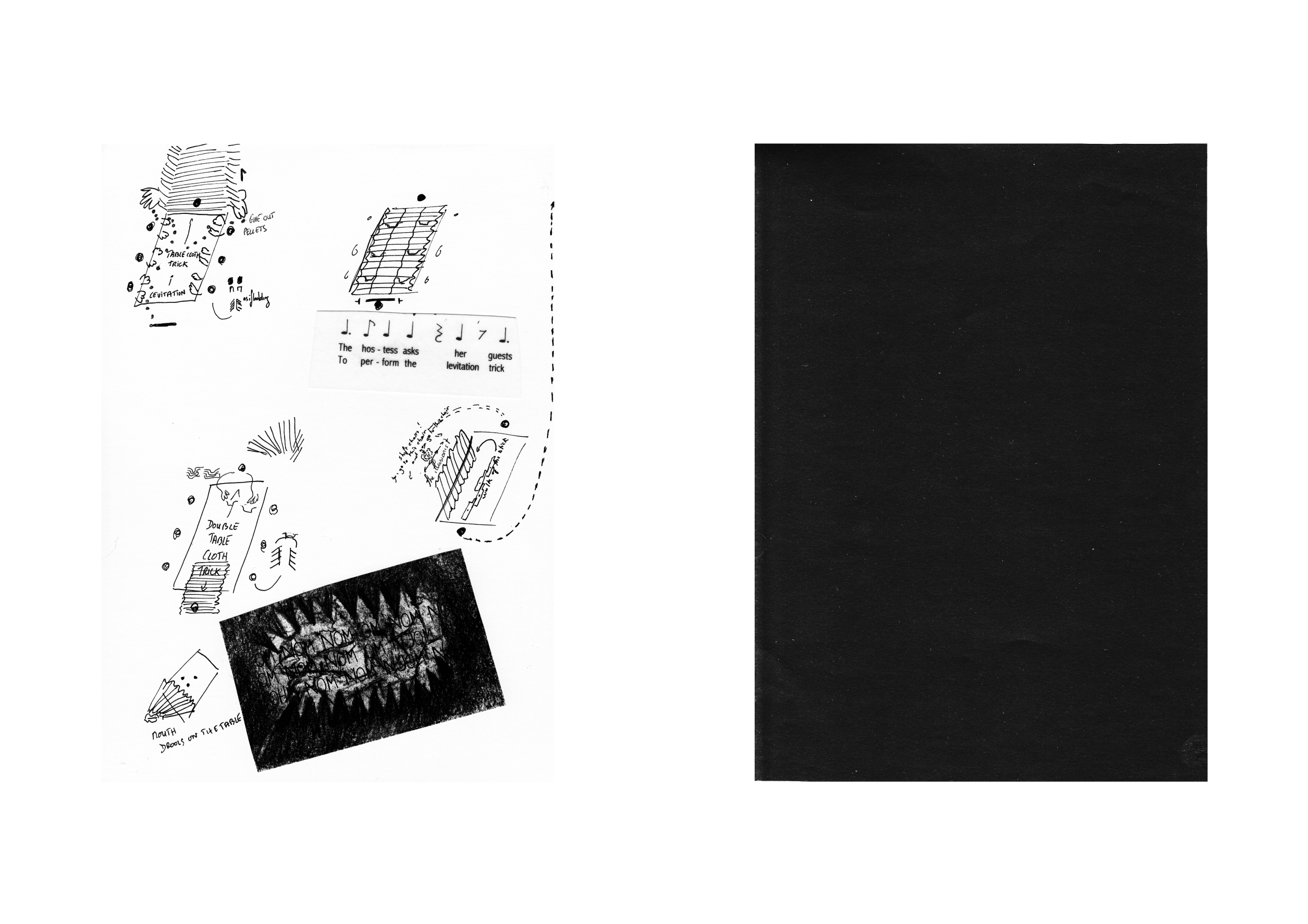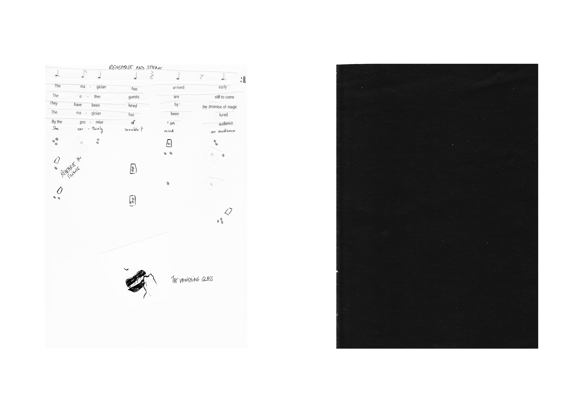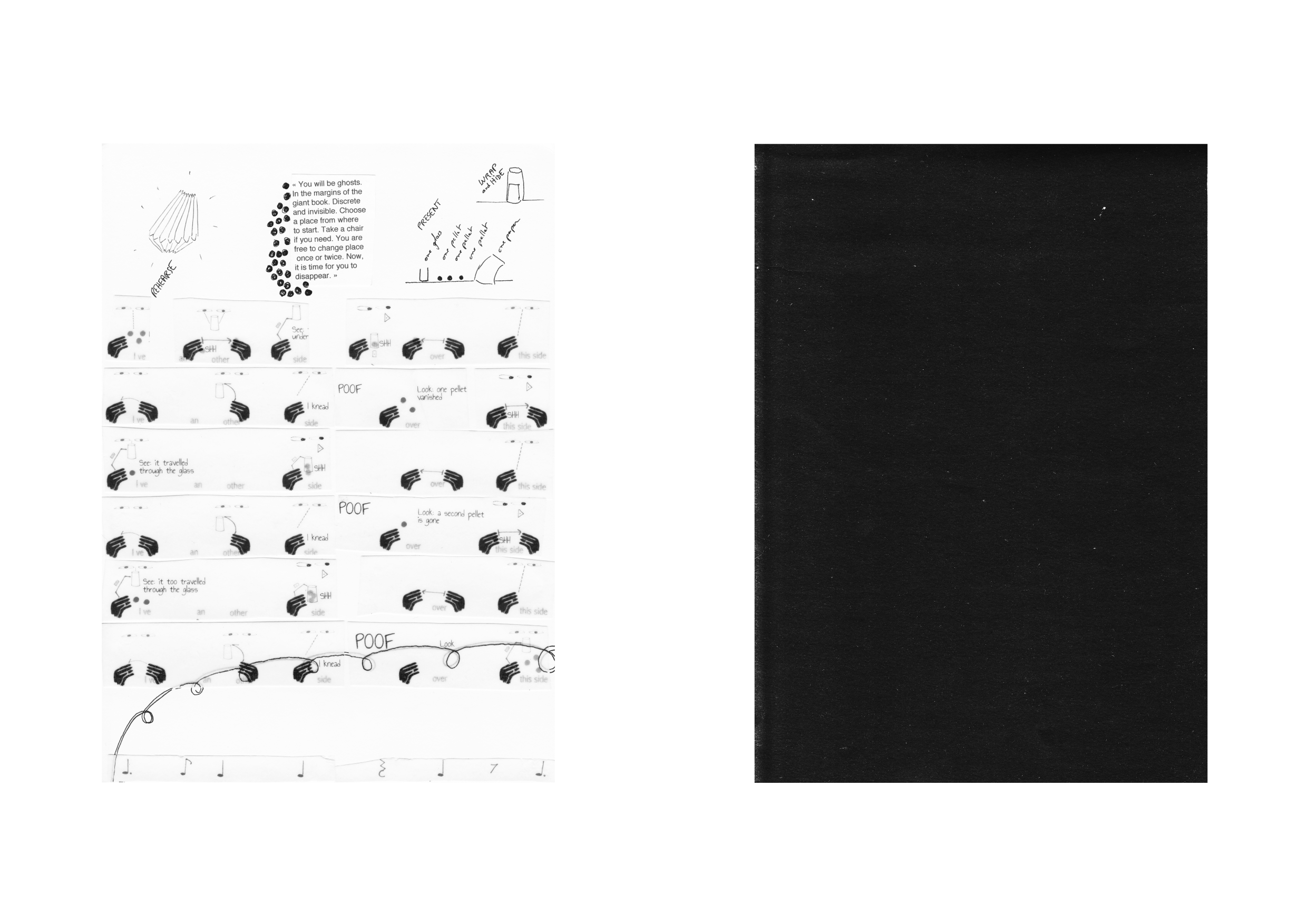 Papier multiforme, Papier comestible draws, among other references, on the magic object 'Trouble Wit' used by 19th century magician Felicien Trewey, and on Hand Movie by Yvonne Rainer. In a Kafkian atmosphere, black and white, with the absurdity, poetry and humour of Edward Gorey's chidren stories, Papier multiforme, papier comestible gives attention to attention.