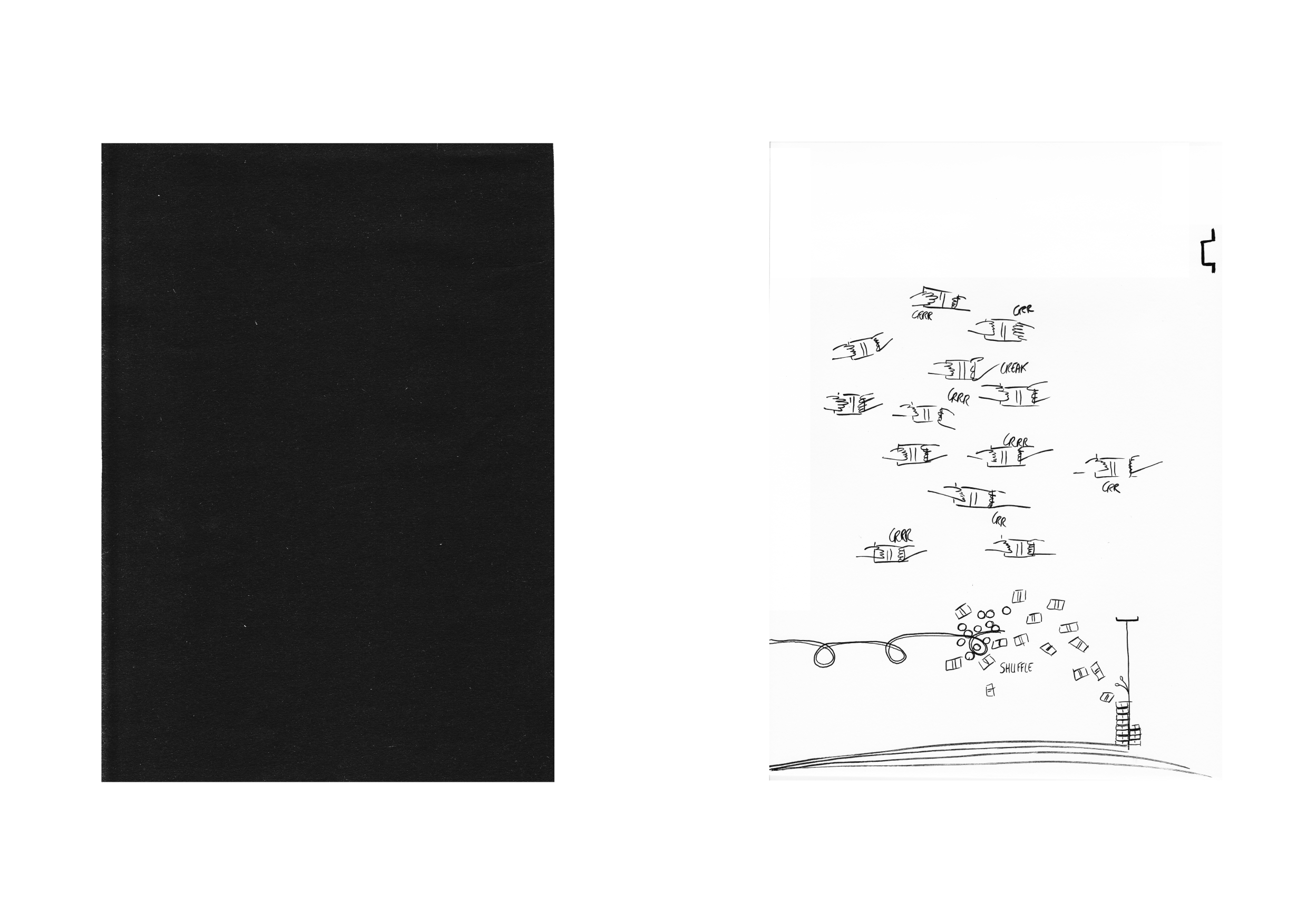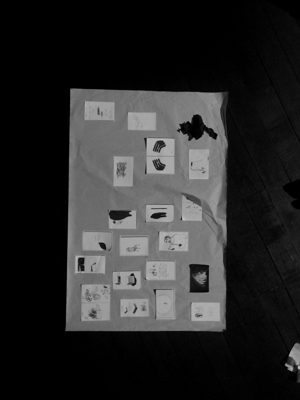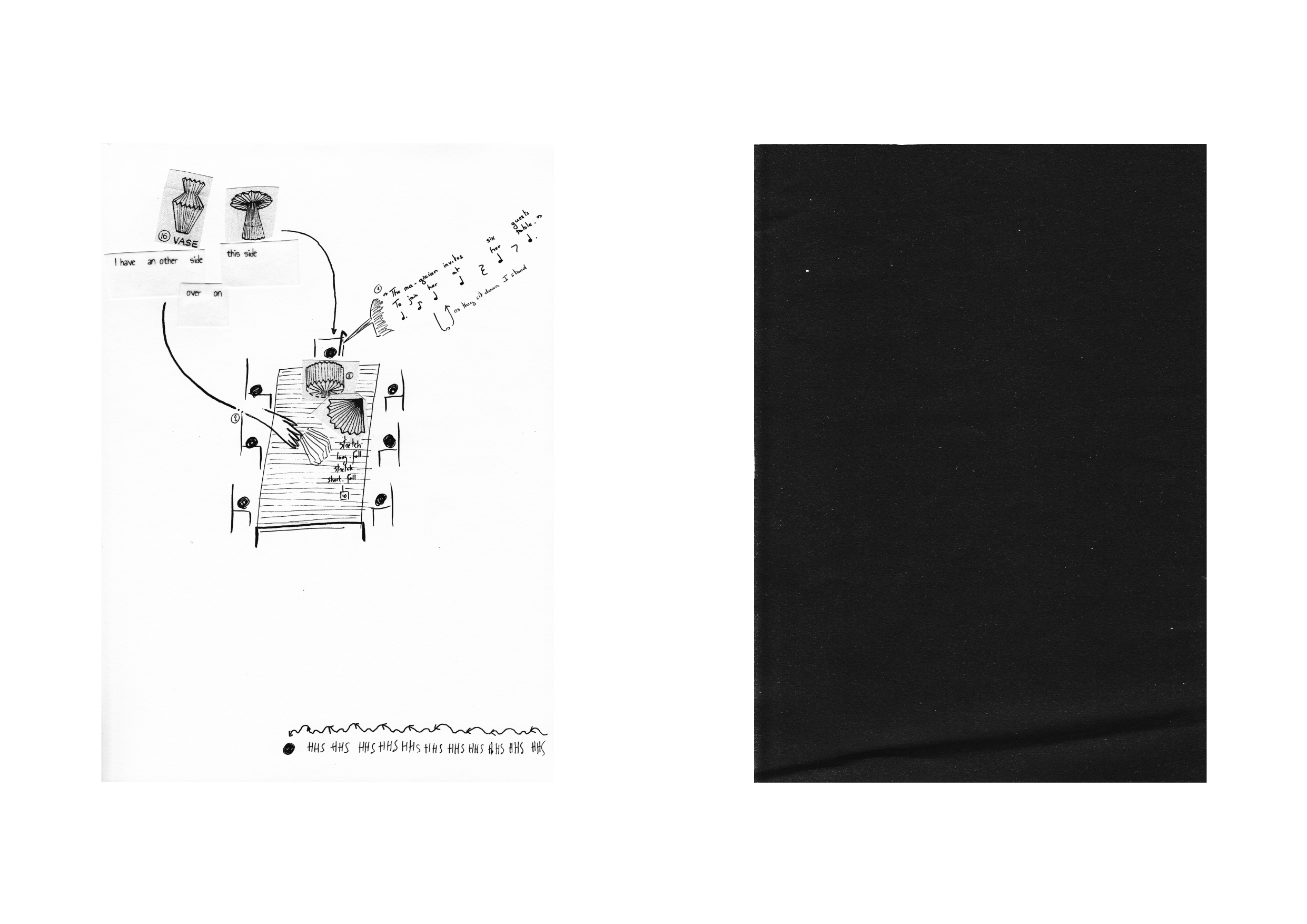 Papier multiforme, Papier comestible draws, among other references, on the magic object 'Trouble Wit' used by 19th century magician Felicien Trewey, and on Hand Movie by Yvonne Rainer. In a Kafkian atmosphere, black and white, with the absurdity, poetry and humour of Edward Gorey's chidren stories, Papier multiforme, papier comestible gives attention to attention.