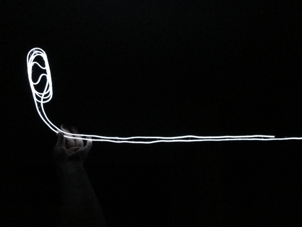 I recreated a streetlight in "neon". The streetlight is emitting light, and so is the light post. I made one light, inspired by the experiment in postcard #1.