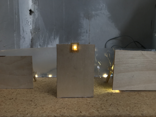 From this sketch, I made a small maquette to see where lights could play a role and which light and shadows games could be played.