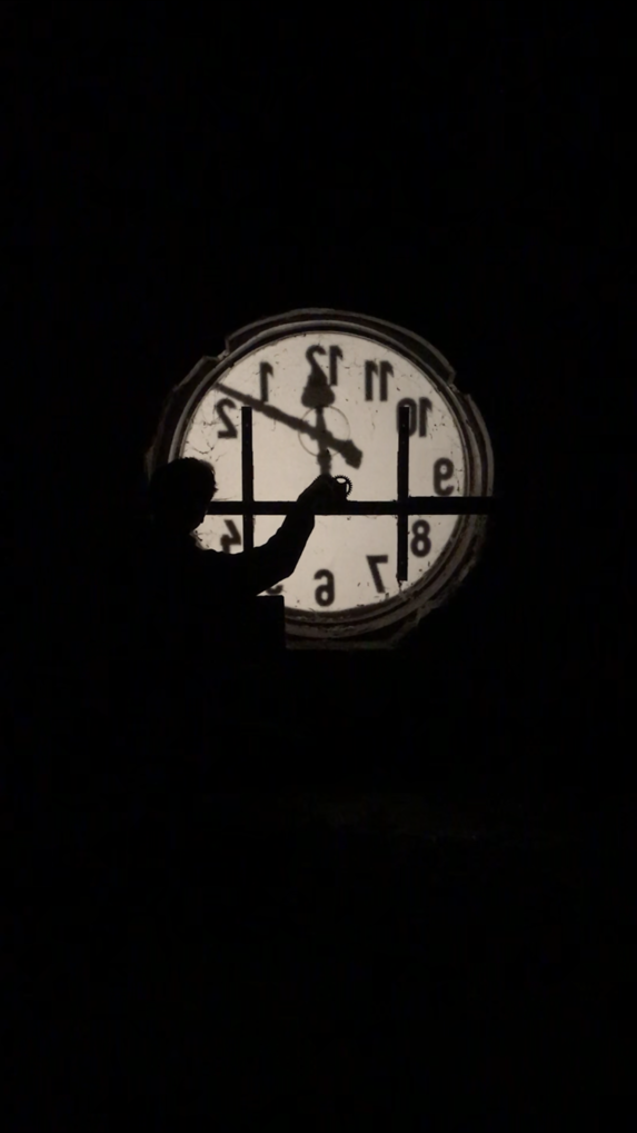 In Times I positioned as a co-performer in the space, a silhouette. The space itself is the main performer. When I saw the space while exploring the building, I immediatly knew that I wanted to work in this space. I imagined how the clock could take the main attention and become performative.