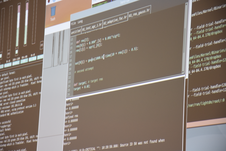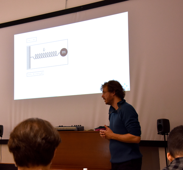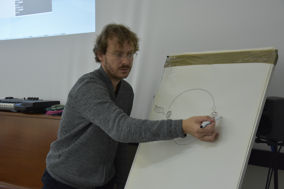 During the course of the masterclass, algorithms were introduced from a mathematical perspective, departing from practical examples derived from the study of dynamical systmes in physics and mathematics. Some elementary algorithms, based on self regulatory processes (like auto gain control), constituted the basis to develop a shared and distributed sound installation composed of small autonomous sound agents (based on raspberry pi boards), all interacting with each other through the medium of sound (each agent was equipped with a microphone and a loudspeaker).