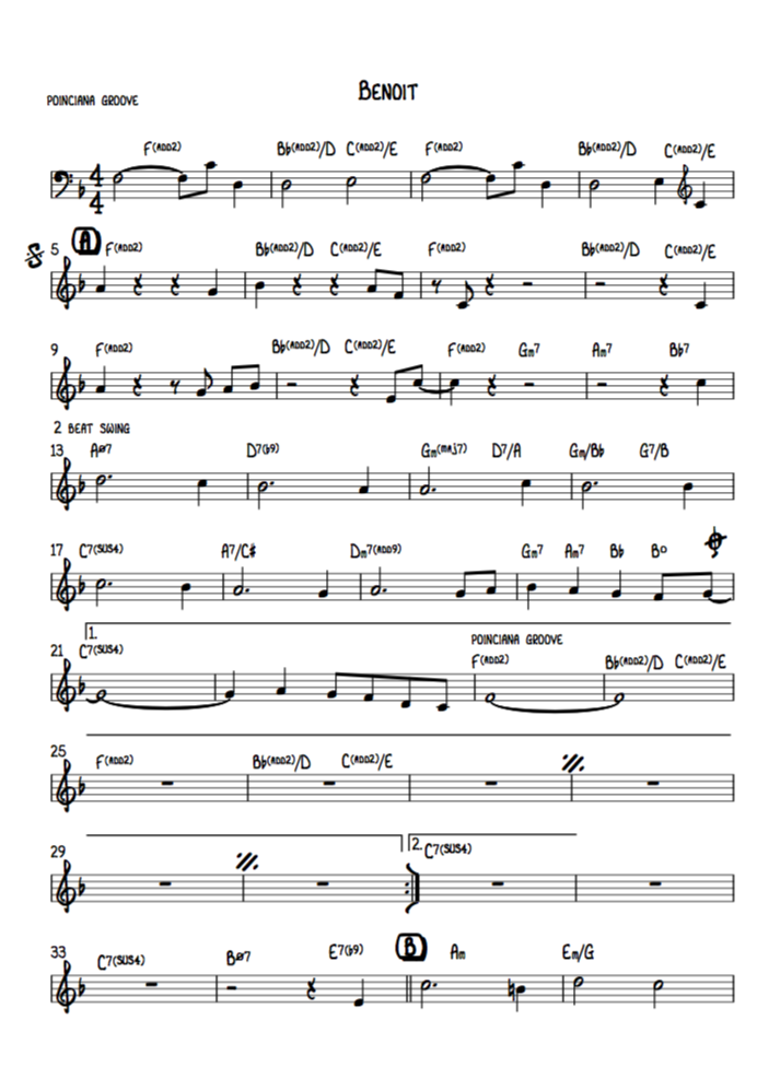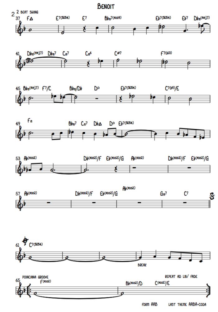Benoit is a AABA tune set to a "Poinciana" groove (The groove that Vernel Fournier played on the Ahmad Jamal trio recording of that tune)