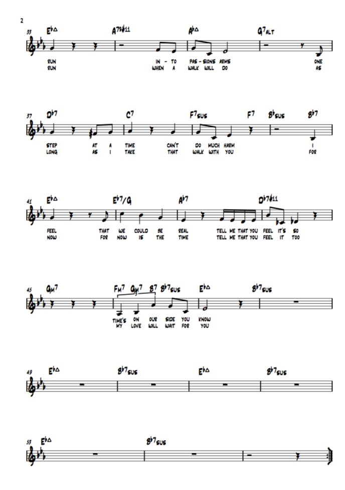 The nicest moment is halfway the tune when it is taken out of the key of Eb into Cb just for two bars. The note Eb in bar 27 (the 5th of Ab7) is repeated but suddenly in a whole new world, the Gb7sus chord... magic! After just touching that other key, it goes straight back to F7, (the double dominant in Eb) to go back home.