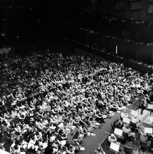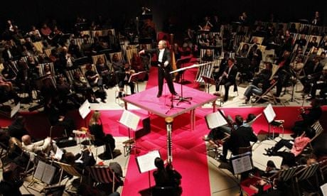 In a similar vein, the Brussels Philharmonic invited listeners to seat in deck chairs placed amongst the members of the orchestra in a series of concerts featuring music by Ligeti, Gabrieli, Wagner and Iannis Xenakis. This seating position was determined by Xenakis, who wanted the audience of his piece Terretektorh to become part of the orchestra machinery and to experience closely how the movements of the musicians influenced sound production (the title of the piece comes from the Greek and means 'drilling holes', which the audience literally did by trespassing the boundaries of the stage and mingling with the performers). The idea of extending it to the rest of the programme, however, was very succesful in what regards bridging the distance between stage and listeners. This concert brings us back to Pierre Boulez, who during his tenure as music director of the New York Philharmonic in the early 70s,  replaced seats with comfy mats in his famous “rug concerts”. In addition to being convivial, these concerts had an egalitarian purpose: since all tickets were sold for the same price, rich patrons and common audience were for once encouraged to sit side by side.