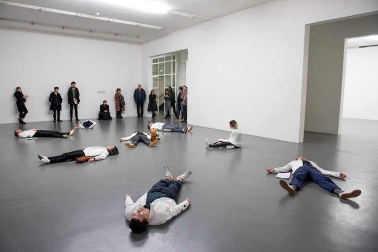 In the exhibition Kunsthalle for Music, shown among others at Witte de With in 2017, curator-composer Ari Benjamin Meyers displaces musical performance from the concert hall to the white cube. For the project, Meyers had selected a group of musicians who performed in the museum each and every day, all day, for the duration of the show (almost three months). The white walls were left empty with the exception of signposts indicating the title of the piece to be performed on that spot. Apart from that, the musicians did the work, alternating performances in the different galleries of the museum, playing soli, in small groups or as a whole ensemble. Since the performances were unannounced, the audience had to move around the galleries and follow the sounds to find out where to go and what would happen next. What Meyers had proposed when displacing musical performance from the concert hall to the white cube was to create a structure that would allow for music to be produced and heard in accordance with the rules of the art gallery or museum. Considering that the concept itself enacted these rules, it also succeeded in making visitors complicit with them: in a Kunsthalle, people are supposed to walk, as is suggested by the space, so if they at times sit down to enjoy a particular performance, it is a matter of choice. Moreover, the location of the project in a popular contemporary art gallery, and the fact that it was presented as an exhibition, already attracted visitors expecting to act as if in an art show. As a consequence, performances felt like tableaux vivants rather than as spontaneous musical experiences. The reception of the project was mixed, with non-music audiences ecstatic about the ‘live exhibition’ of musicians and the possibility of being so close to them, and music reviews uncomfortable with the zoological gaze of the audiences upon the musicians, and pondering about time (what happens to the duration of the piece?is it still a piece of music if it is not listened to as a whole, or does it become pure sound?) and acoustic isolation (see Sound Leakage below). Such questions challenge expectations and conventional musical markers, showing how a new context alters even the most commonplace musical parameters.