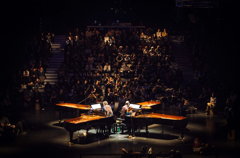 Ensemble Ictus’s Liquid Rooms are informal performance situations inspired by rock festivals and improvised gigs. Inside of a Liquid Room, music is performed for several hours in different parts of the hall. Lighting effects (blackouts, strobings, projections) and 'instantaneous productions' (improv and remixes of performed works) ensure a smooth and unbroken transition between the many stages and pieces, the latter chosen for their cool, ambient and/or hyperenergetic nature. The audience is invited to move freely within the concert space, entering or leaving it at will. In brief, a situation very different than the one portrayed on the picture of pianist Sergey Rachmaninov, where a formally clothed and sitting audience listens in reverence to the likewise formally clothed pianist on stage.