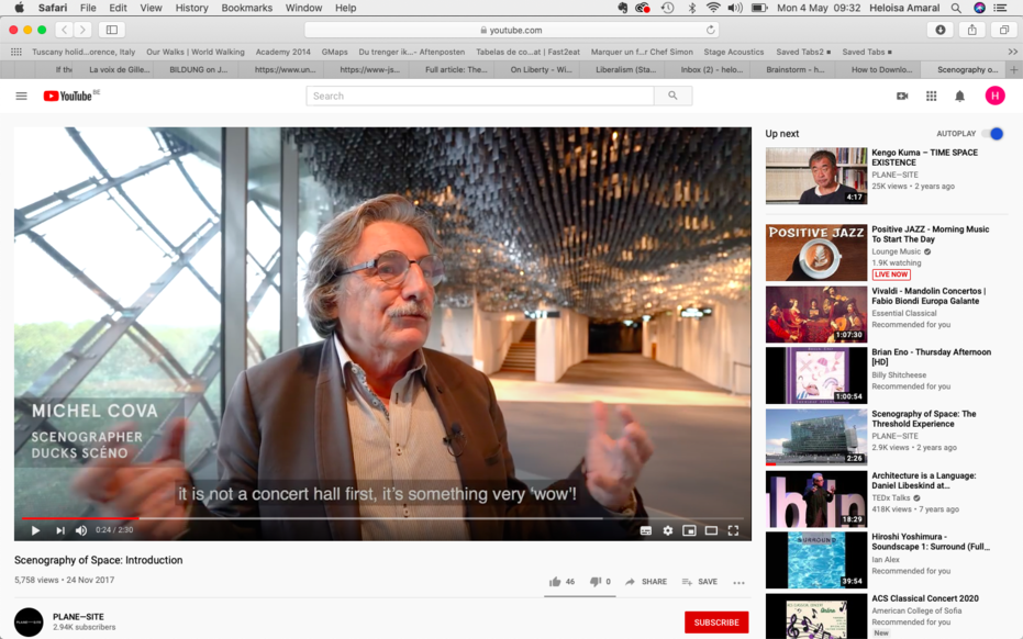 Architectural acoustics and how it shapes our sound ideal is a very exciting topic, and there is extensive research in this domain. Scenography in Space is particularly interesting in the sense that it shows how conceptions of architectural acoustics in concert halls, in addition to being standardised, are intimately linked to political notions such as democracy or national identity.