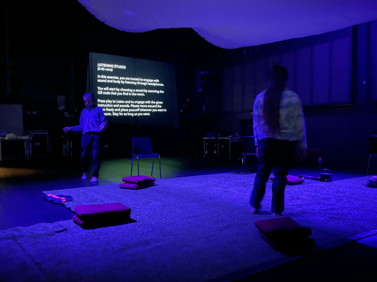The project investigates practices of listening to sound, place, body, memory, and imagination and its potential to serve as a performative site for sonic, kinetic, and proprioceptive immersion. It explores the artistic possibilities of creating co-authored listening-based performance situations by means of a transdisciplinary artistic research practice between dance and sound artists, choreographers, and composers.