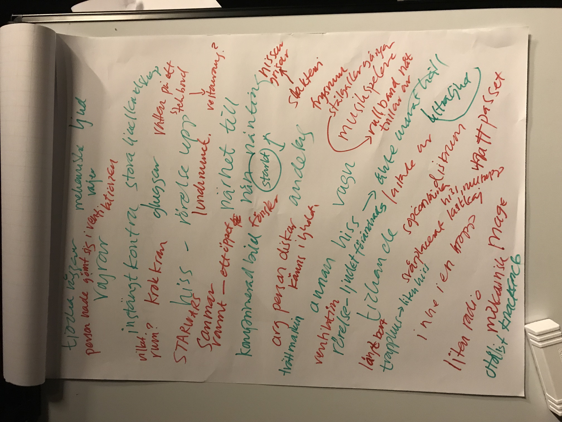 A five hour improvisation between two research practices; sound/fragmenturgy and image/re-animation. In a dark room Persson and Sunesson will gradually create a storyworld from sound and moving images through a dialogical dj:ing/vj:ing. Visitors can come and go, spend some time with the process anytime during these five hours.