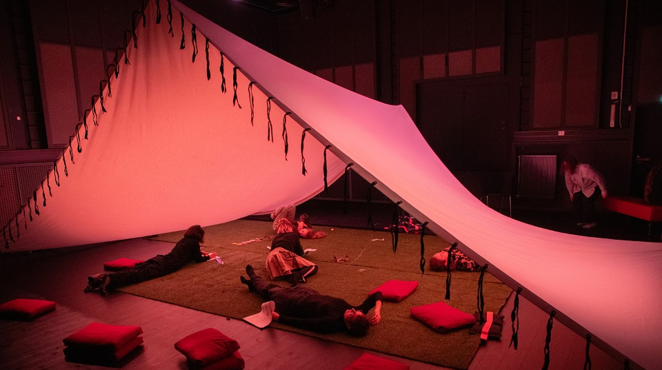 You are encouraged to freely interact and listen-with the objects and humans present in the acoustic space of The Listening tent.