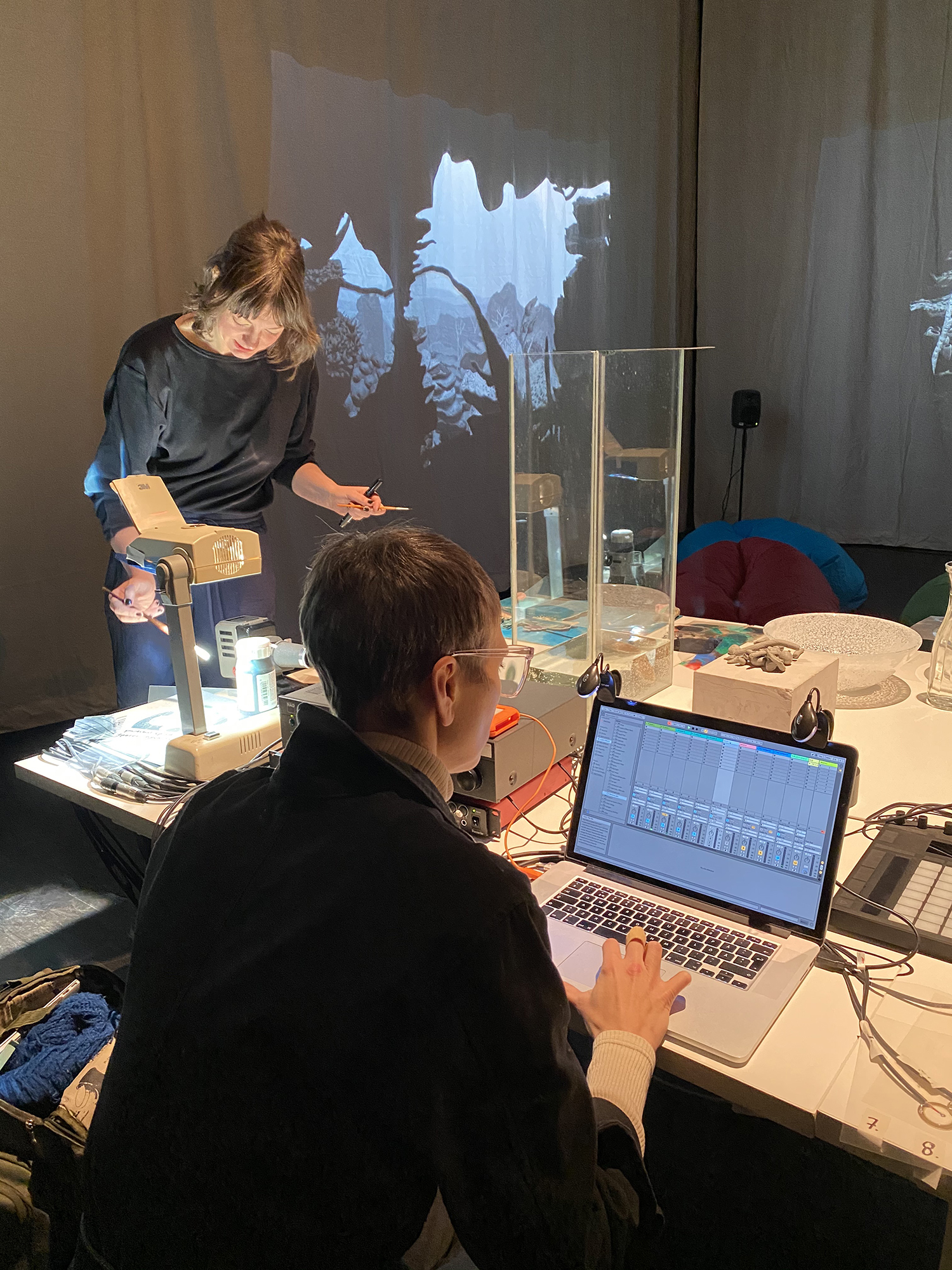 From dead petrified fossils to soft clay imprints, to animated clay. It investigates the Silurian coral reef organisms as humanity’s ancestors and potential future descendants. During a five hour long improvisation Persson and Sunesson experiments within this storyworld and by analysing layers of sediment and layers of sound they will together continue to build and expand it. Exposition in RC.