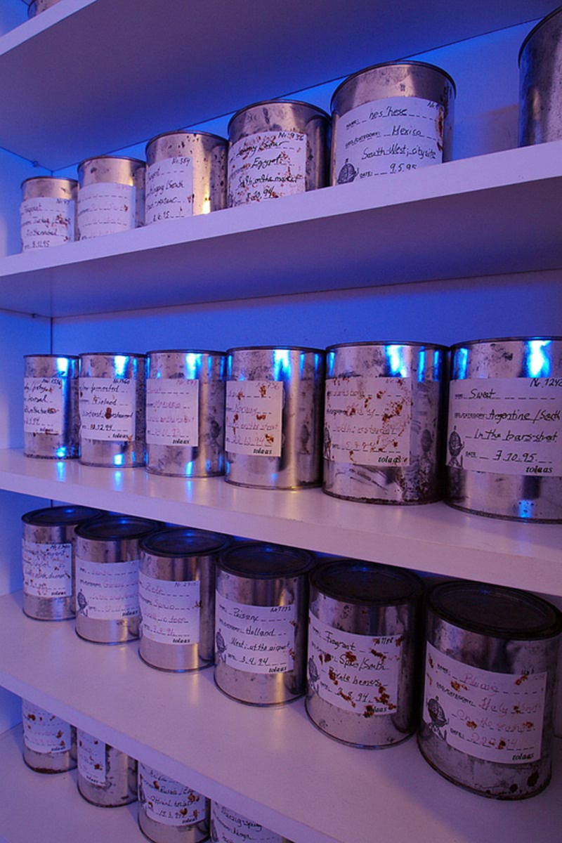 The smell archive is an archive in process since 1990. The archive today consists of 6763 distinctive smells from all over the world. Each smell emits from ‘something’. This ‘something’ is collected, hermetically preserved and canned in aluminum-boxes. The boxes all have the same shape and size.