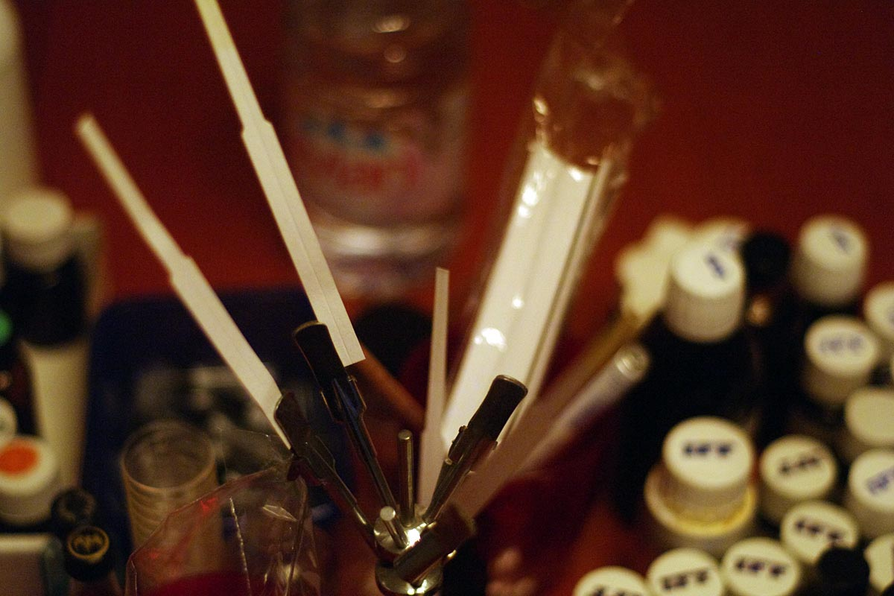 The Lab is supported by International Flavors and Fragrances (IFF), a leading creator and manufacturer of flavours and fragrances, which provides the lab with all its necessary ingredients and technical equipment. The Re_Search Lab is a research situation in which highly qualified professionals from different disciplines meet for the purpose of creating new and innovative approaches to the social role of smell. The lab’s unique mix of research projects with conceptual work on smell and the olfactory attracts companies, institutes, universities and individual clients. The Re_Search Lab is a 'station of dialogues', a place to establish a continuous dialogue between IFF experts and a range of other experts. The goal of the Lab is to change existing notions on noses, smells and the act of smelling and makes a perfect context to further develop the archive of smell and it's interconnected language that has been growing for nearly twenty years.