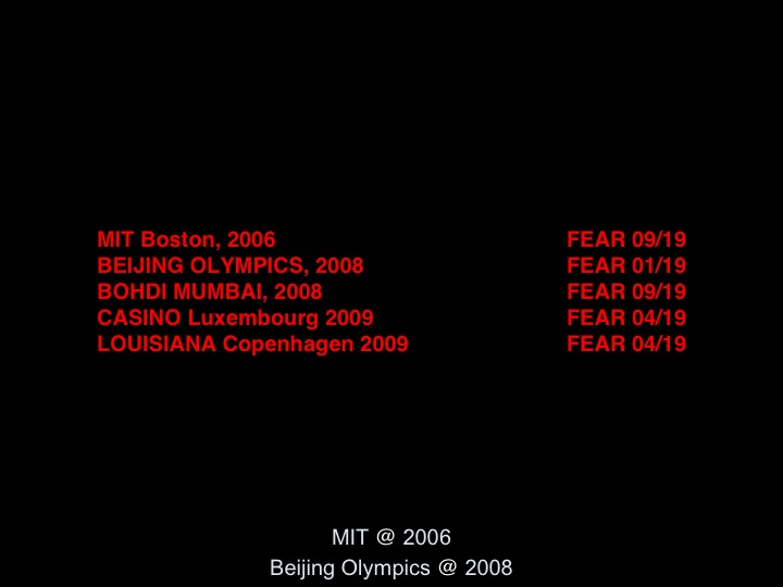 The FEAR research project started in 2005 with twenty men (bodies) from twenty different parts of the world with one severe phobia in common: A fear of other people's bodies, based on different, extreme and less extreme, reasons. Each of these men were given an electronic device that was specially made for the project; a very small object that the men carried with them everywhere and all the time.