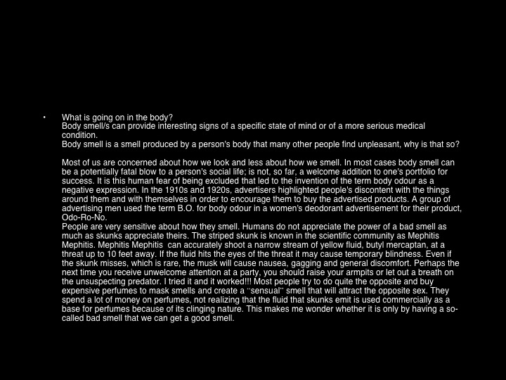 NOTHING STINKS ONLY THINKING MAKES IT SO.