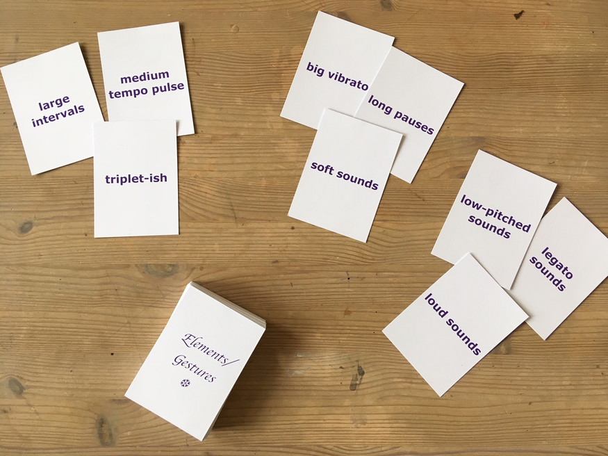 Let me finish this short discussion about the Metaphor Card Deck by mentioning that I believe there is a huge creative potential in coupling parameters and metaphors, which could be quasi-linguistically hinted at as “musical parameter A is to be imagined as depicting metaphor X”. The method is yours to grab. At the time of writing this, 2+ years after shifting my focus from the Metaphor Card Deck onto the Elements & Changes Card Decks, I am still curious as to what kind of music would come out of it, had I not found other ways of condensing textural and sonic ideas into my writing for ensembles of improvisers. An updated Research Question in this direction would in that case be something like: