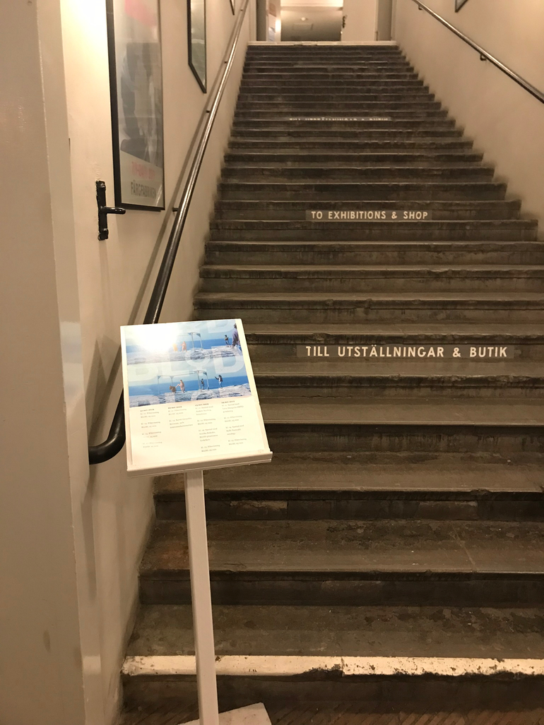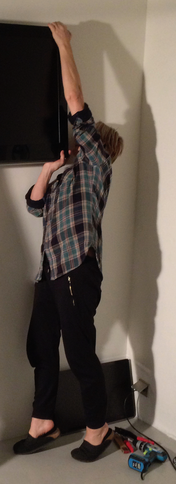 Checking in on my students at Valhallavägen. When I get to Färgfabriken, the equipment has already arrived. It takes the whole morning to get the five monitors mounted. In the afternoon we roll out the dance mats and tape them. Reminiscence of cold floors and waterish coffee.