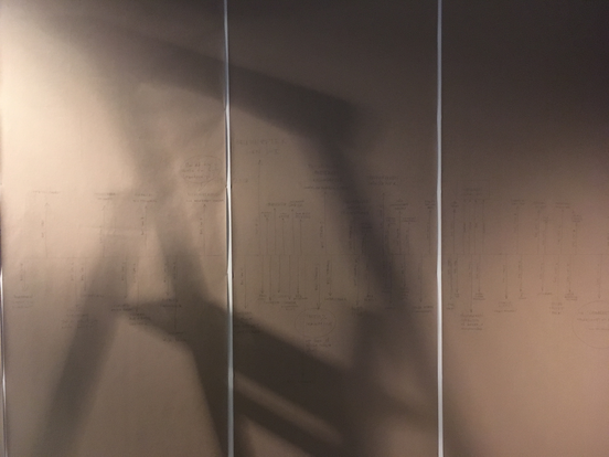 Climbing up and down ladders rigging the three projectors. Kersti is busy with getting the film material into the monitors, I start tracing out the timeline of the project. Distributing its events across the three years it has been going on, I feel how tangible content and form, the trying and the doing – the labor of it all – is embodied in me.