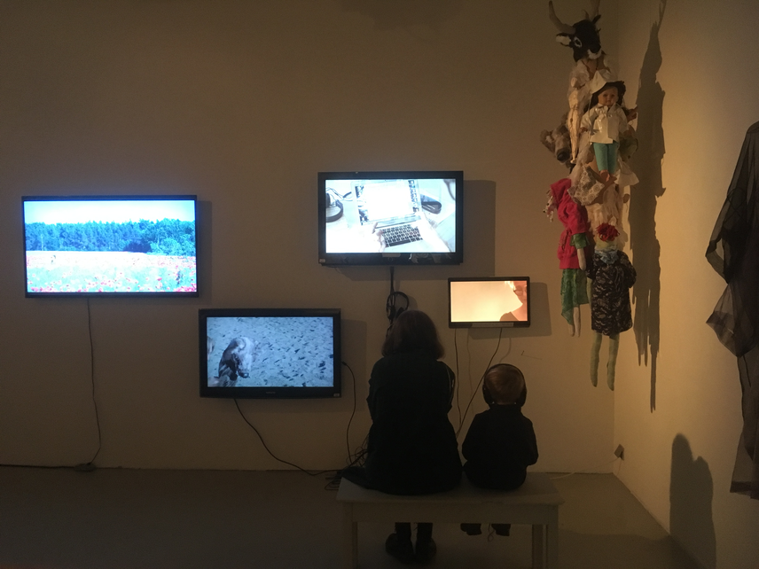 During the day in the Open Studio, two little girls imitate the movements of Kersti and me dancing, projected on the wall. One says: you’ll be the purple coat, I’ll be the black.