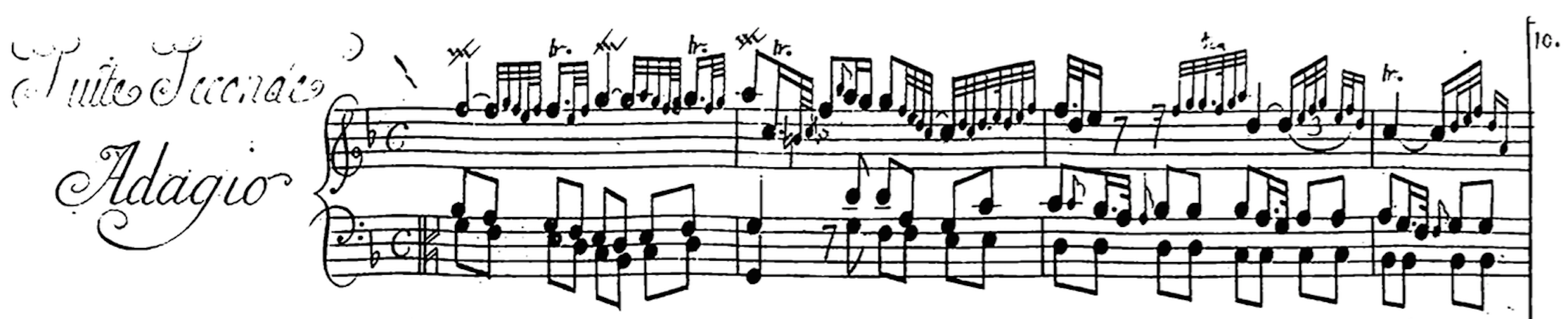 Heinichen, Der Generalbass, 548, §.28. footnote (h) ‘(2) Bey der oben gedachten melodieusen Arth, da man mit der rechten Hand gantz alleine eine Melodie, Passagien, Harpeggiaturen und allerhand Variationes zu machen suchet, welchenfalls ein Liebhaber gleich in das 3 gestrichene X. hinauff steigen mag, wofern er etwas sauberes allda zu holden vermeinet.’ ↩︎