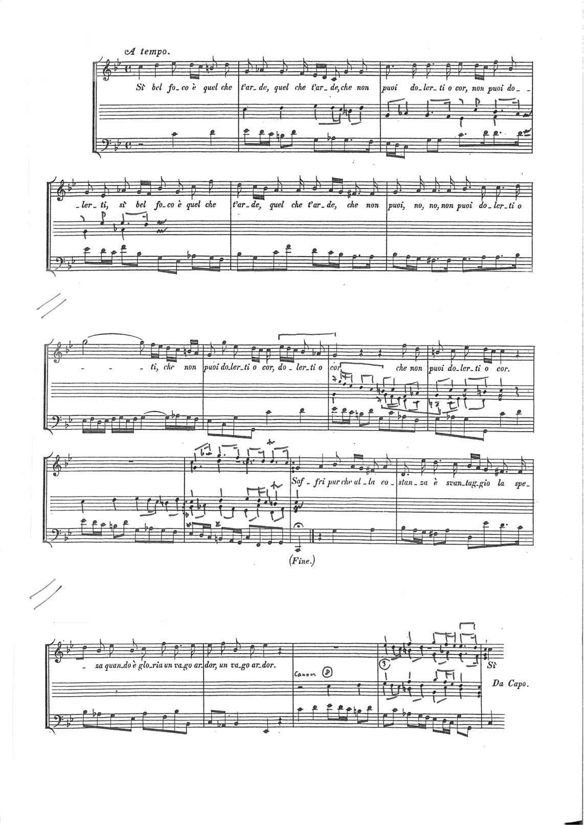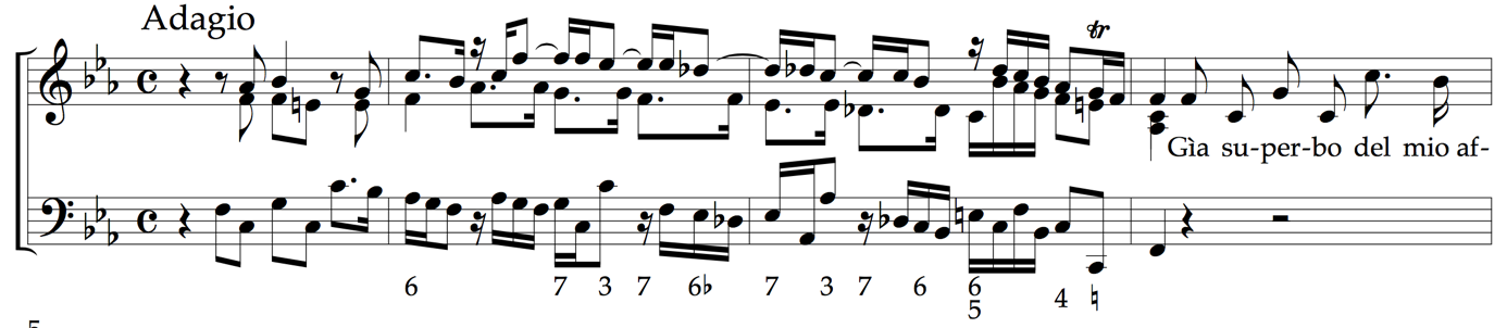 When I develop realizations, I alternate between a compositional approach and an improvisational approach. To show how one can construct a realization using a compositional approach, I will use the first aria ‘Lontano al mio tesor’ from Lungi dal mio bel nume.