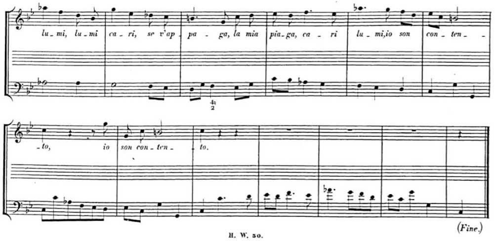 F. Chrysander, Italienische Kantaten für eine Solostimme und Baß, HG 50 and 51 (Leipzig: 1887). Luckily, he didn’t provide a continuo realization like in the Italian duets and trios, Italienische Duette und Triosʼ, HG 32 (Leipzig: 1870) with continuo realizations by Johannes Brahms(!) and J[oseph?] Joachim. ↩︎