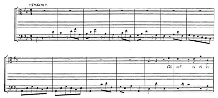 Heinichen, Der Generalbass, 578, §.40. ‘[…] Weil aber doch seltene Casus vorkommen können, […] (sonderlich in Cantaten und Arien ohne Instrumente) […], da ein geschickter Accompagnist die im General-Bass, oder in der concertirenden Stimme angegebene Clausul mehrmahl wiederhohlen könte, […] daß die rechte Hand die concertirende Stimme gern suchet in 3en und 6ten zu begleiten, und gleichsam ein concertirendes Duetto mit ihr zu machen. Welche Arth der Imitation sonderlich in cantablen Sachen wohl ausfället, und desto leichter zu bewerckstelligen ist, weil man in Cammer- und Theatralischen Sachen den Sänger aus der gewöhnlich darüber geschriebenen Stimme genau observiren, ihm ausweichen, und wiederum nachgehen kan.’ My translation. ↩︎