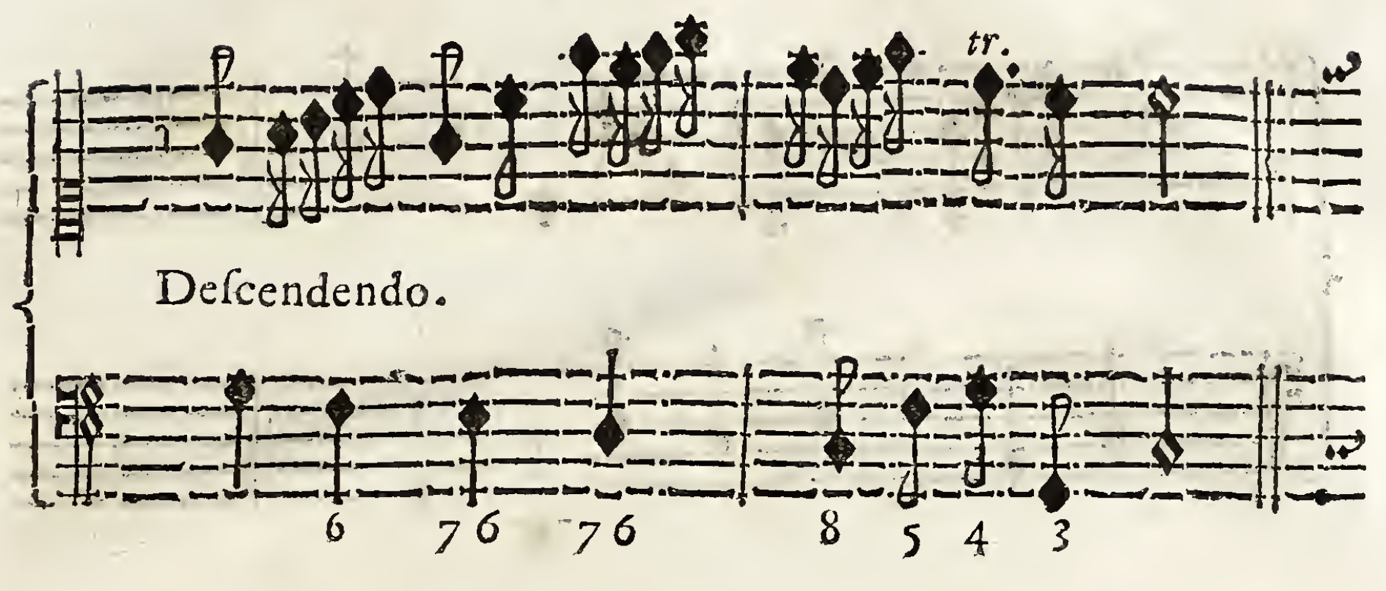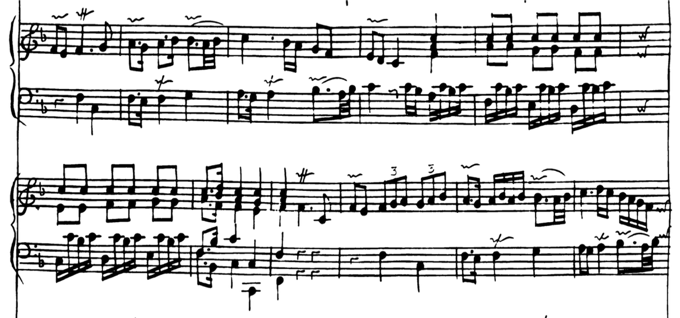 Heinichen, Der Generalbass, 522, §.4. ‘[…] Die erste Classe mag in sich enthalten diejenigen kleinen Manieren, […] und diese seynd (1) das Trillo, (2) der Transitus in die 3e, (3) der Vorschlag, (4) die Schleiffung, (5) die Mordente, und (6) die so genandte Acciaccatura. Die andere Classe hält in sich diejenigen Arthen der Manieren, welche von uns selbst müssen erfunden werden, und von eines jedweden Einfällen dependiren, welche seynd (1) die Melodie, (2) die Passaggien, und (3) die Harpeggiaturen oder gebrochene Sachen. Wobey wir noch (4) die Imitation, als eine besondere Manier mit anhängen wollen.’ My translation. ↩︎