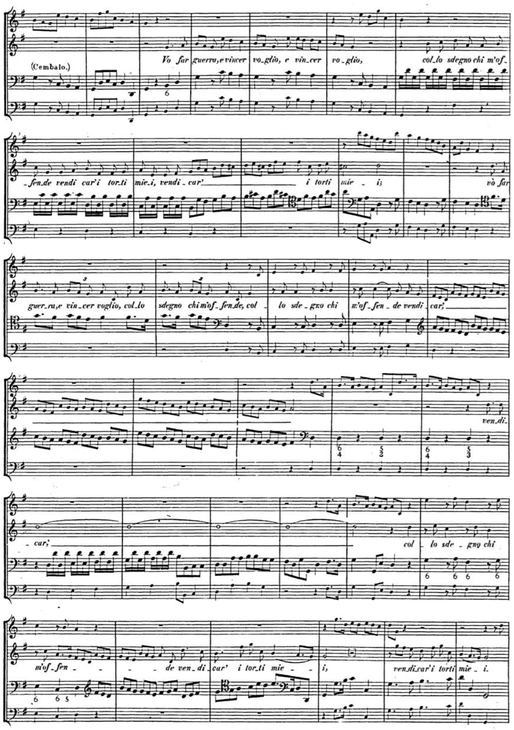 This aria (with some slight changes) was re-used as a continuo aria in Handel’s second opera for the London stage, Il Pastor fido (1712). Handel composed a final ritornello for the strings that uses motifs from the singer’s material:[22]