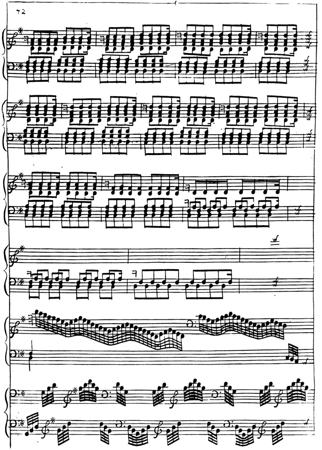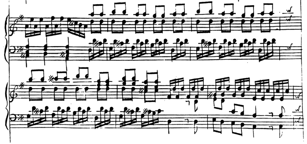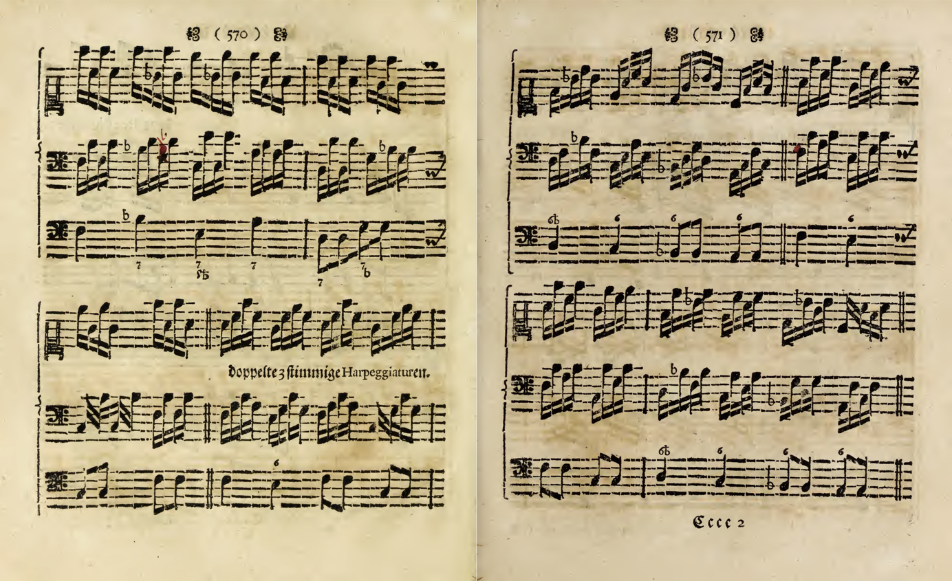 Heinichen, Der Generalbass, 548, §.28. footnote (h) ‘(2) Bey der oben gedachten melodieusen Arth, da man mit der rechten Hand gantz alleine eine Melodie, Passagien, Harpeggiaturen und allerhand Variationes zu machen suchet, welchenfalls ein Liebhaber gleich in das 3 gestrichene X. hinauff steigen mag, wofern er etwas sauberes allda zu holden vermeinet.’ ↩︎