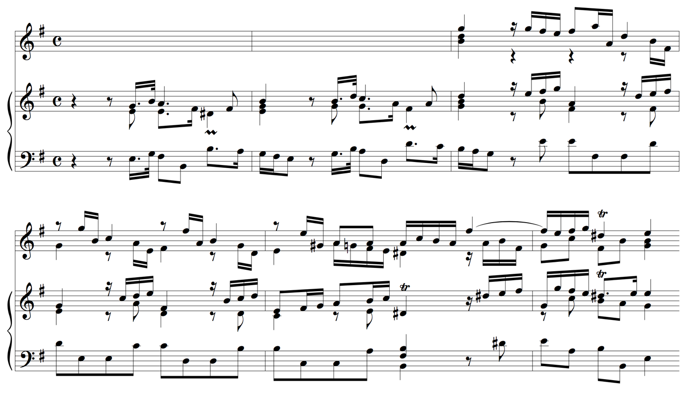 J. S. Bach, Sonata in B-minor for flute and harpsichord (BWV 1030, 2. mvt). ↩︎