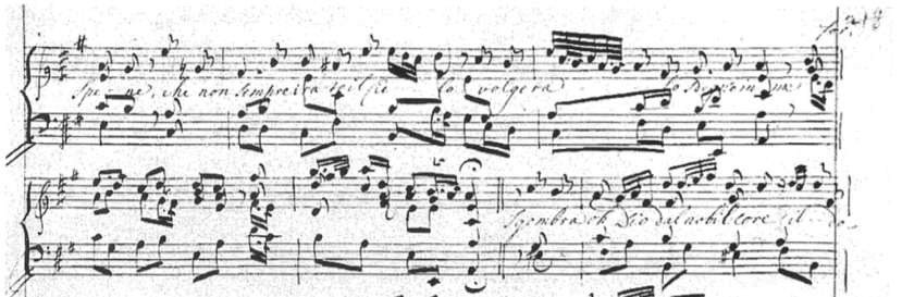 Interestingly, this cantata exists in two versions: the first (HWV 127a) is dated Rome the 3rd of March 1708 and the second (HWV 127c) dates from London in the mid-1720s when he revised several cantatas – referred to as ‘pedagogical cantatas’ – probably for teaching purposes in his duty harpsichord teacher to Princess Anne.[19] In the revised versions, Handel figures the bass carefully and makes other changes – as he did with 15 other cantatas that underwent revision during the same period.