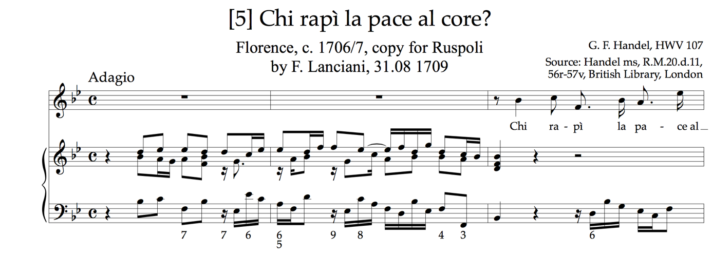 Chi rapì la pace al core? in Handel’s autograph (British Library R.M.20d.11, fol. 56r):