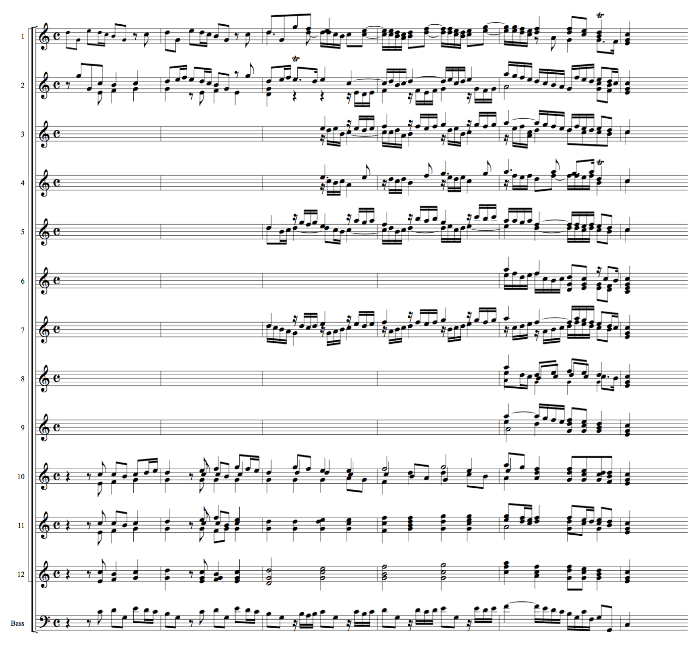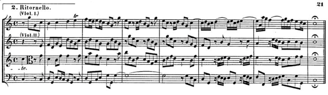 The keyboard player’s abilities are best displayed in the ritornellos – where the greatest variety of possibilities occur and one plays alone.[20] Let us look at the opening ritornello:
