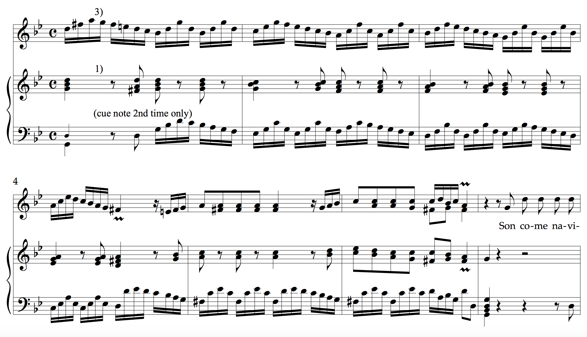 Heinichen, Der Generalbass, 551 §.29. ‘Wie nun die Melodie hauptsächlich in cantablen, affectuosen und langsamen Sachen ihren Platz hat; also lassen sich hingegen die Passagien, als unsere andere Arth der Manieren, besser in lebendigen, und geschwinden Sachen anbringen.’ ↩︎