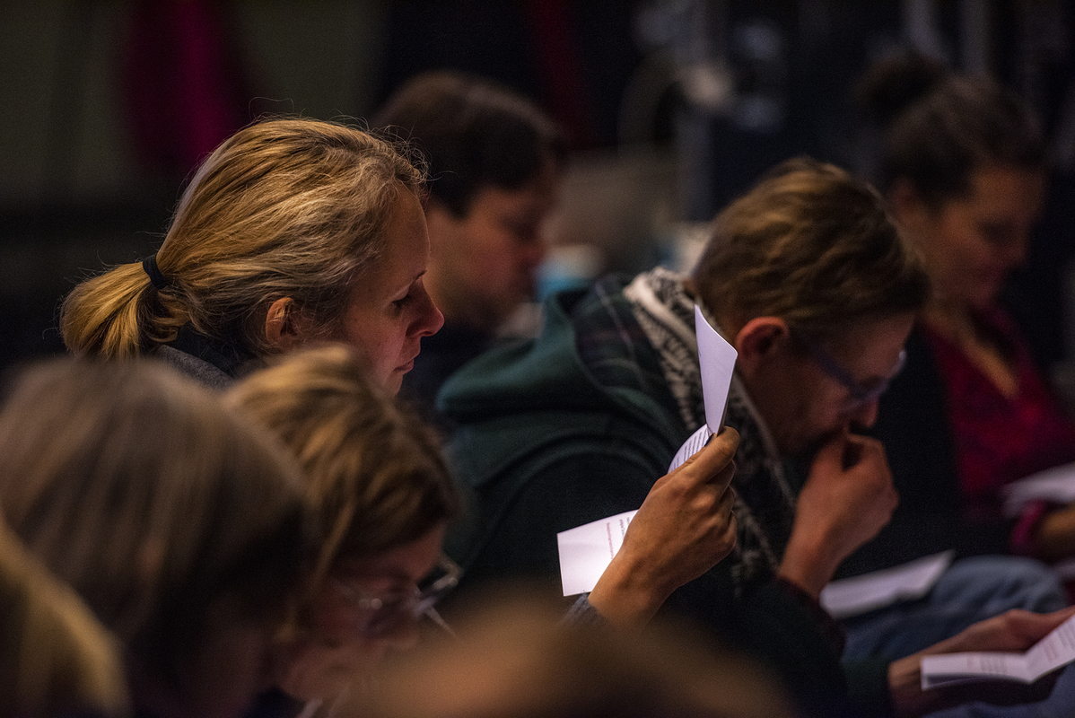 How does the audience appear? What do I / we perceive? What is happening? How does it feel? How am I a part of the audience? How are we / am I in the space? How do I / we act? How are we / am I in relation to the stage?