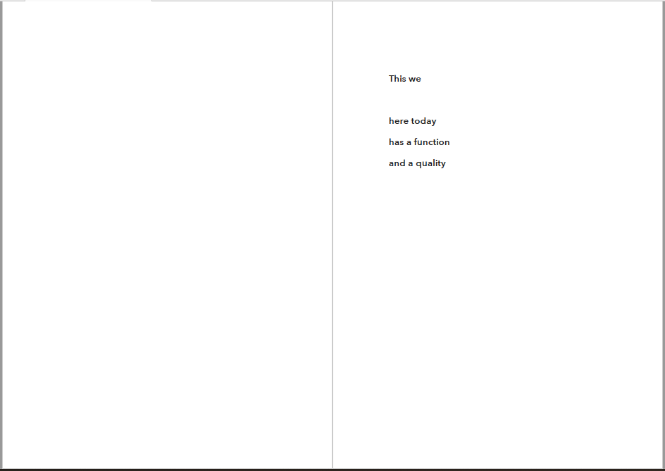 Näitä asioita en ymmärrä ja toivonkin, että käytätte näytökseen varatun ajan kysymysten ruumiilliseen pohdiskeluun. Tai käytämme - sallikaamme minut osaksi samaa materiaalisuutta. Siinä kaikki. Näytös kestää alle 30 minuuttia.