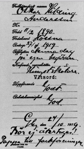 Oscar Andersson var anställd på Farsta gård som hästskötare och hans favorit, den belgiska hingsten hette Eruidith.