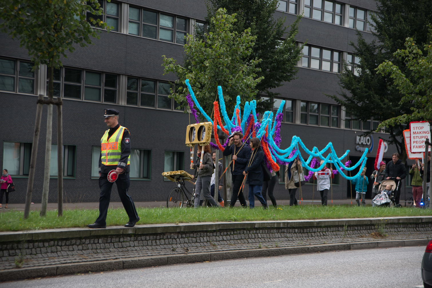 It was a participatory performance which was presented at the Hallo Festspiele on the 09.09.2017 as a walking performance from the Berliner Tor to the old Kraftwerk Bille at Hammerbrook / Hamburg, Germany.