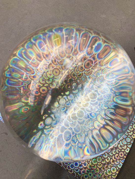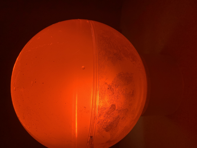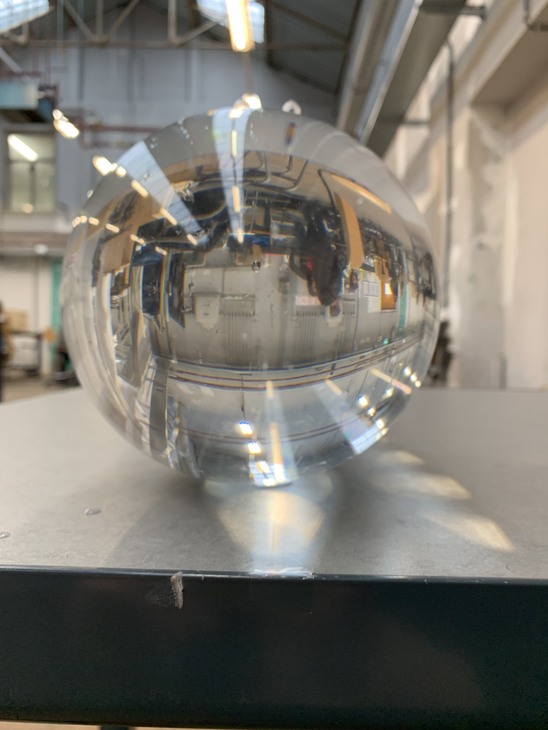 When I recently bought a bottle of vitamin water and put it on the table, and the sun shone exactly on the bottle, the orange of the water glowed so intensely. I was very fascinated by the luminosity of the orange. Due to the semi transparency I had the feeling that the whole thing was even more brilliant from the color. It reminded me of the brightness of the sun. The saturation and luminosity that convey a warm feeling. I would like to investigate exactly this intensity in an experiment in the near future. What happens when I fill one of my plexiglass balls with it and put a spot on it? Could this be the center of my universe? Like the sun in our solar system? Could my work build on it and revolve around it? Everything will still embody its own world, create its own environment. however, is this perhaps the center and perhaps the starting point of the whole? What if the ball was not illuminated but a light bulb was inside?