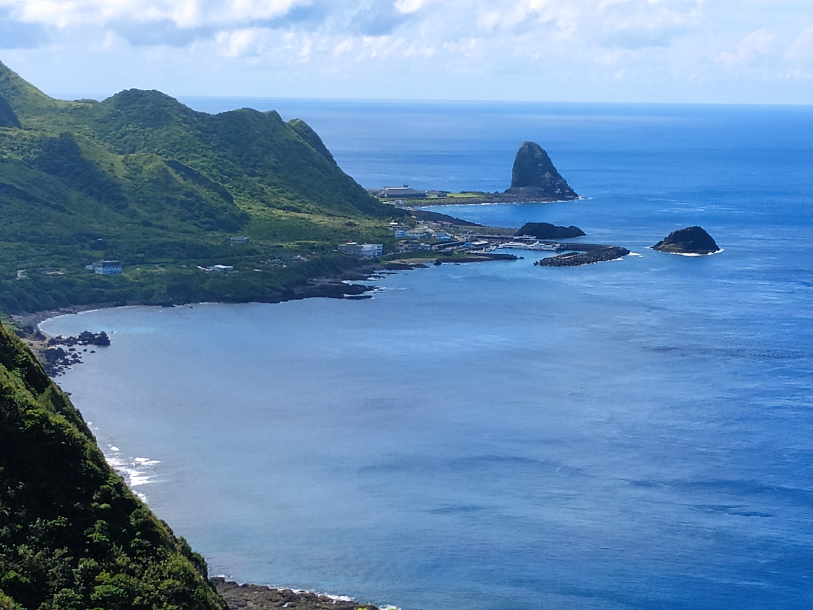 A ship had just arrived from Taiwan, the curious tourists got out, and the tour guides said something funny with the megaphones.