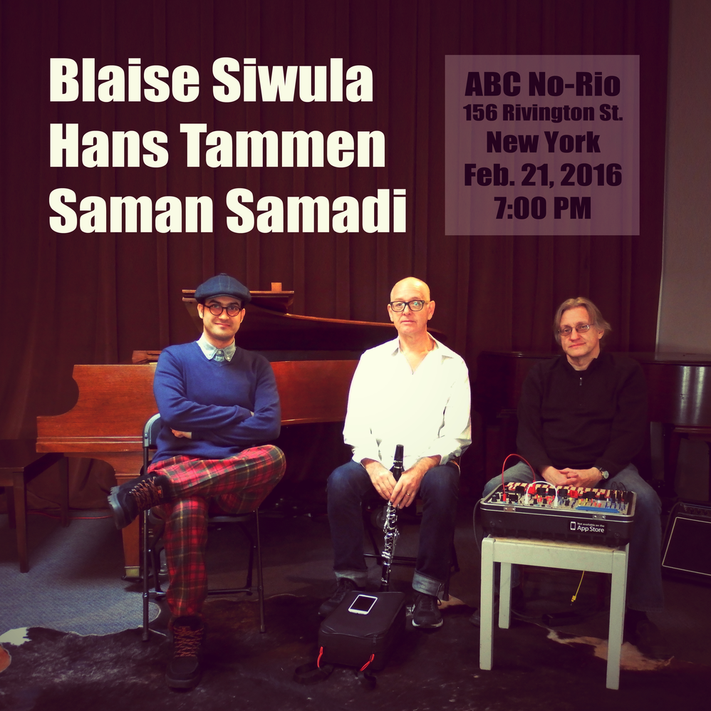 '16. Āpām Napāt Trio. COMA. Saman Samadi, leader & pianist, and Blaise Siwula, clarinetist, and Hans Tammen, Buchla player. Organized by COMA (Citizens Ontological Music Agenda). ABC No-Rio, New York, February 21, 2016.