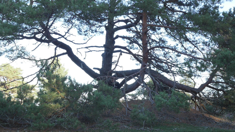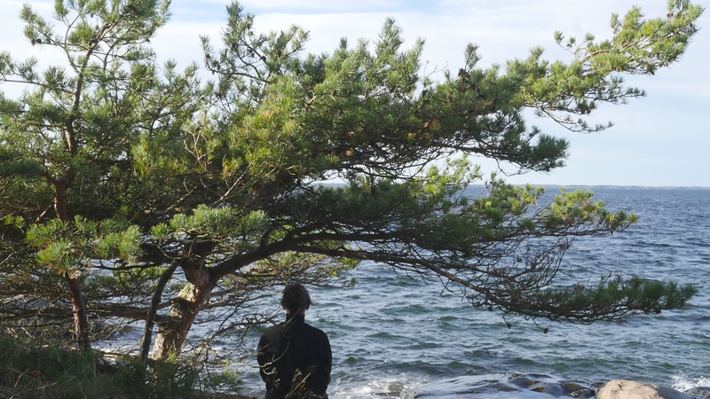 It is a great pleasure and honour to be able to sit on your branch and address you with this letter, simply to be with you on this island, a former military island that has been turned into a national park and opened to the public only five years ago. The island is full of pine trees, both old and young ones, and many of you are bent in strange contortions due to the constant wind. The reason I came to you today is exactly that, the extraordinary situation that there is no wind. It is so quiet that I can hear the buzz from the “radar” tower, not far from here. I have been here only for a week, so I cannot say for sure, but as I hear it is usually windy here, so let us enjoy this moment of stillness as a beautiful exception! I actually visited you last week and even posed for a video camera together with you, because I was so impressed by your place of growth. Half of your roots are cut off and a portion [part] of your trunk rests in mid-air. There is a big hole where sand has been extracted right next to you, to the right from where I sit, although I chose to place the camera in a such a way that your deformations and your precarious position do not show. Why did I do that, actually? Your “bravery” was what caught my attention to begin with. Perhaps as a gesture of respect, I guess. I wanted to show you at your best, not as the vulnerable creature you are, like all of us. – At this point I probably have to explain why I address you formally like this, and in English. This letter is aimed not only for you, but [also] to other humans to hear, or perhaps read as well. And unlike some other letters to trees I have written, this will be a letter pondering on letter writing and especially writing letters to trees, so a “meta-letter” of sorts, probably, at least on some level. I would not like to bother you with ponderings that have no relevance for you if I did not feel that you somehow accept being part of this attempt. With all your experience of winter storms, military assaults and now visiting tourists, lately, you are of course accustomed to human attention. And I do not really demand any response from you, I simply try to articulate my thoughts in your presence, in writing, as clearly as possible, so that you can sense them in your manner, or then my intentions at least, and my respect, if nothing else.