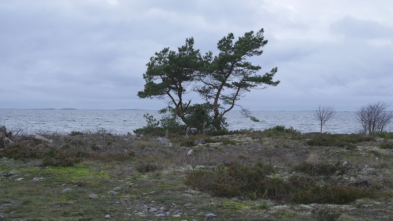Excuse me for bumping into your “lap” without notice, coming to you like this without forewarning, and disturbing you this November afternoon. It is a great pleasure and honour to be able to sit on your branch and address you with this letter, and simply to be with you and to spend time with you on this island, a former military area that has been turned into a national park and opened to the public only five years ago. I am grateful to you for appearing or performing together with me for this brief moment and for allowing me to record this meeting with a video camera. At this point I probably have to explain why I address you formally like this, and I also have to apologize for addressing you in English, which is not my native language, nor your preferred language, I assume. What your preferred language would be I do not even dare guess, something with volatile chemicals, perhaps. The reason for this formal address is that I hope this letter will reach other humans and not only you, that is, humans will hear or probably read this letter as an example of my practice of writing letters to trees. And unlike some other letters to trees I have written, this will be a letter pondering on letter writing and especially writing letters to trees, so it will be a “meta-letter” of sorts, probably, at least on some level, since my aim is to consider this practice in terms of its ethical and artistic implications; at least I will try to do that. Meanwhile, I also hope that these thoughts will somehow reach you, if not through these words, then through my thoughts. And even though you might not be able to read my thoughts in a strict sense, I hope you will be able to sense my intentions, somehow, and to affirm that they are benign and respectful. I would not like to bother you with ponderings that have no relevance for you if I did not feel that you somehow accept being part of this attempt. And I do not really demand any response from you; I simply try to articulate my thoughts in your presence, in writing, as clearly as possible, so that you can sense them in your manner, or then my intentions at least, and my respect, if nothing else. With all your experience of winter storms, military assaults and visiting tourists, lately, you are of course accustomed to many things, including human attention.