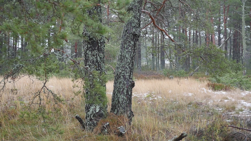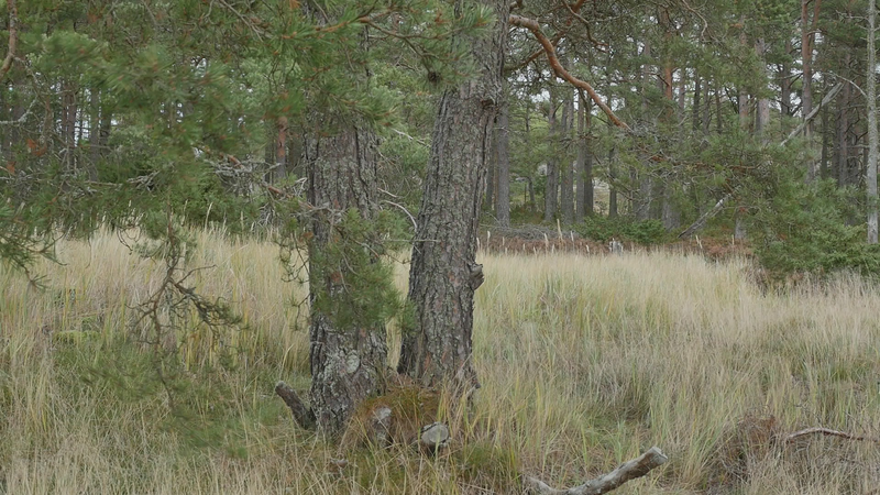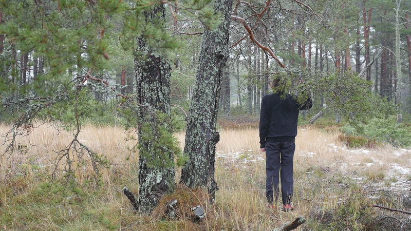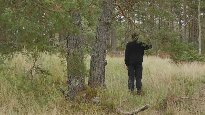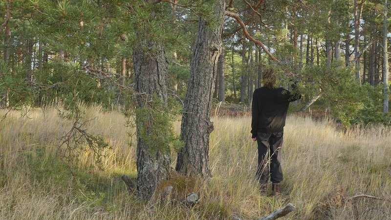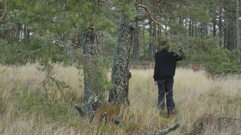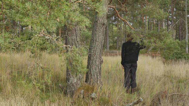 Det är bara en månad sen vi sågs senast, och det känns som en evighet. Världen är helt annan nu, åtminstone Örö. Det är den åttonde oktober, det blåser hårt, eller kraftigt, från sydväst, syd. Det är mulet, ganska kyligt. Jag kom hit igår, och jag skynda mig till dig genast idag för de har lovat regn resten av veckan. Jag skall stanna här ända till nästa torsdag, och det är ju härligt. Jag hoppas kunna besöka dig ännu en gång i år, men det är inte säkert. Det kan hända att det här är vårt sista möte. Men jag hoppas att det inte är så. Trots att världen omkring dig har förändrats, det har blivit höst, så ser du ut som förut. Du har antagligen vuxit under sommaren, men så oerhört lite att jag inte kan se det. Vinden blåser sanden i ögonen, och håret. Jag var ju här på Örö första gången i november förra året, men jag tyckte inte att det var så kallt. Kanske jag väntade mig novemberkylan och då känns det varmt i jämförelse med det. Medan jag nu ännu inbillade mig att oktober är höst, och bara början av hösten egentligen. Så det borde inte vara så fruktansvärt kallt. Nåja, det är inte fruktansvärt kallt, det är inte minusgrader, det är bara kyligt. Jag är bara instinkt… på något sätt inställd på att det skall vara varmare hela tiden på grund av klimatkrisen. Men det behöver ju inte bli varmare nödvändigtvis, det kan också bli mera regn, mera stormar, mera underligheter. I förrgår deltog jag in en demonstration för första gången i mitt liv, inte första gången in mitt liv, men på många tiotals år, som var för att stöda Extinction Rebellion eller Elokapina som det heter på finska. Jag vet egentligen inte vad det heter på svenska. Alltså ungdomar som kräver att regeringen skall utlysa kris, undantagstillstånd och åtgärda klimatkrisen. Och det var en grupp forskare, dels från Aalto, dels från Konstuniversitetet och Helsingfors universitet, som ställde upp med en banderoll eller två för att stöda ungdomarna. Så at jag stod och höll i en banderoll där det stod på engelska Researchers Rebel for Life. Forskarna gör uppror för livet. Och det vill man ju gärna göra. Det kändes bra att stå där, framför ungdomarna som satt på gatan och blockerade trafiken. Vi stod där länge, en och en halv timme, innan polisen sa till oss att skingra oss. Och då skingrade vi oss snällt. Men ungdomarna blev ju kvar och blev bortförda av polisen, i häkte. Jag är ingen aktivist, jag är verkligen, visserligen praktiskt lagd men… att jag sitter här hos dig, det är liksom mitt sätt att utrycka min åsikt. Så jag var lite rädd att delta först. Men det kändes konstigt nog helt bra, och riktigt. Om det sen har någon effekt är det en annan sak. Men åtminstone blev det en viss synlighet i media. Jag vet ju inte vad som borde göras, men jag litar på aktivisterna och klimatforskarna som säger att det finns lösningar, det är bara politiska beslut som fattas, och jag tror ju det. Och med Coronakrisen fick vi ju se att det går att fatta drastiska beslut. Det går att göra beslut som känns obehagliga, men som är nödvändiga för att få en ändring. Det är kanske det mest spännande som har hänt mig sen vi sågs senast. Jag har varit ganska mycket i Stockholm, och där umgås jag med ett ginkgoträd som de har planera, planterat helt nyligen alldeles nära där jag bor. Vad mera kan jag berätta åt dig, jag vet inte. Jag funderar på att börja en ny serie, eller ny, men alltså ett nytt projekt som jag… I mina arbetsskisser kallar jag det för Talar med tallar, men nu har jag börjat fundera om det egentligen skulle vara bättre att kalla Funderar med furor, för det är ju inte talandet som är det viktiga, utan funderandet. Eller då Mediterar med martallar, om man vill ha en allitteration. Det lär finnas så väldigt många olika slags tallar i världen, så det skulle vara roligt att träffa lite andra också. För jag tror att alla ni tallarna här i Finland är ju släkt. Jag tror ni heter alla Pinus sylvestris. Kanske det finns några andra tallar i parker, men ni är nog samma tallar, även ni martallar, så vitt jag förstått. Men det skulle vara spännande att trädda andra tallar också, och på det sättet uppmärksamma mångfalden, om man så vill. Men det får bli till nästa år. Jag vet inte hur det skall bli. Jag har ju träffat en massa tallar förutom dig, men det är verkligen roligt att komma tillbaka till dig och se att du mår bra. Nu har jag så kallt om händerna som håller i mikrofonen att jag tror att jag skall lämna dig här i vinden, och hoppas att du inte lider för mycket av den. Och ja, hoppas att du har det bra de kommande månaderna, om jag då inte kan komma på besök innan jul, vilket jag hoppas att jag skall göra. Men ha det så bra till dess. Sköt om dig, tack!