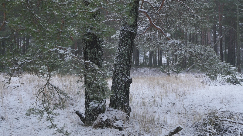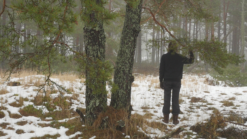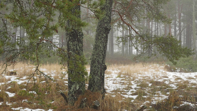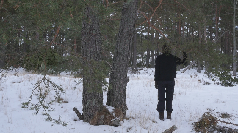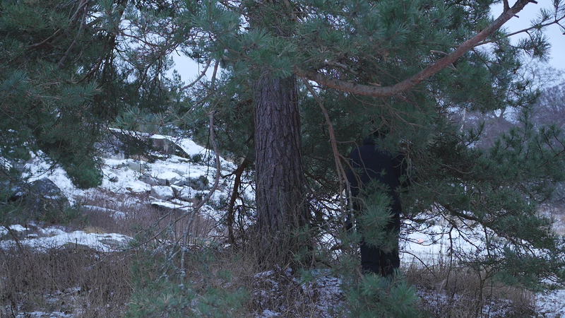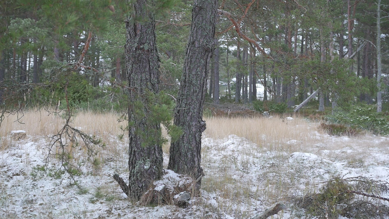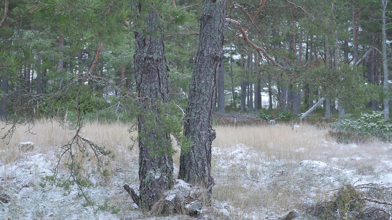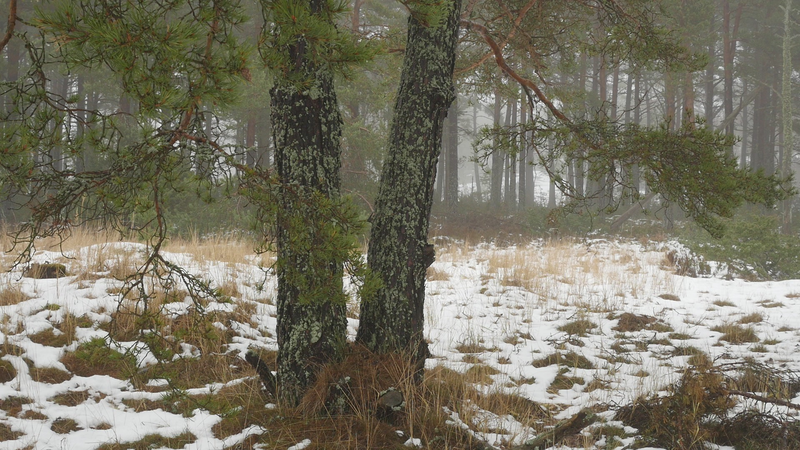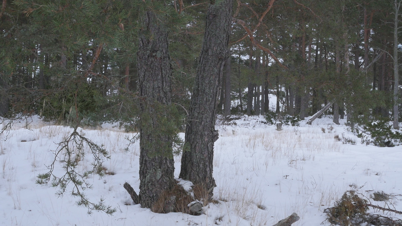 Det är roligt att vara här hos dig igen. Det är över en månad sen jag var här senast. Det är februari, tjugonde februari tjugohundra tjugoett, och det är ovanligt mycket snö i år, en riktig vinter, trots klimatförändringen. Jag undrar om du sover över vinterns, som björnar gör, och många djur, eller vilar, det gör du säkert åtminstone. Men du har ju dina gröna barr så i princip kan du väl fortsätta jobba som vanligt. Men jag tänker mig att, att det är för kallt för alla vätskorna att röra sig i din stam. Men kanske barken är tjock. Nu är det inte så kallt, det är egentligen snöbollsväder, kring noll [grader], men förra veckan var det väldigt kallt, och veckan innan också. Kanske växter inte fryser på samma sätt som djur. Frysa gör de ju, kölden tar livet av växter förstås. Men ni tallar är vana med kölden. Jag kan tänka mig att det blir svårare när det blir varmare. Inte för att värmen i sig skulle vara jobbig, bara det finns vatten, och det finns det säkert nog här. Men det kommer ju en massa nya insekter och svampar och all slags smådjur som tycker om att äta och borra hål i dig och så vidare. Det handlar ju om balans, det förstår jag. Din bark är alldeles full av olika typers lav, och det verkar inte vara något problem för dig. Men det är klart att om, om det sen finns insekter som borrar sig in i ditt trä och sprider sjukdomar, så är det en annan sak. Jag vet inte om det är möjligt för dig att förbereda dig för klimatförändringen. I princip skulle det kunna vara farligt för dig att vara så här nära vattenbrynet, nära havet, för om havsnivån skulle stiga så mycket som den har planerats att den skall göra, så då skulle du hamna under vatten, faktiskt. Men lyckligtvis har vi ju fortfarande landupphöjningen efter istiden här, som motverkar det stigande havs-, den stigande havsnivån en aning. Havet ser häftigt ut nu när det är isbelagt. Isen är mörk och inte vit idag, så det liknar vanligt hav, men det som är spännande med det är att det är helt tyst. Nu blåser det lite, och jag kan tänka mig att vinden slår mot mikrofonen också ibland, men i morse var det alldeles tyst. När man kommer från stan är det nästan overkligt med en sån tystnad. Så plötsligt hörs det en liten fågel som inser att det börjar bli vår så småningom. Det känns ju inte som vår i den här kylan, men ljuset återvänder. De säger att växterna förstår att de skall börja växa, inte för att ljuset återvänder, utan för att de, utan innan det, redan innan det när det blir mörkt. Jag undrar om det stämmer för dig också. - Jag vet inte om du, om du sover, om du vilar, eller om du är här nu, medveten, medveten på det sätt som en tall är medveten. På sätt och vis är du ju mycket mer medveten än människorna, till exempel när det gäller olika nyanser av ljus eller nyanser av fukt, antar jag, och så vidare. Men å andra sidan så har du ju inte en medvetenhet som är som vår. Jag kan tänka mig att vinden är det viktigaste, för det är vinden som böjer dig och tvingar dig att följa sig själv, eller följa, böja sig för vinden. Och det är bara vinden som hörs just nu, när havet inte brusar fritt. Jag hoppas jag inte stör din vila genom att sätta mig här. Kanske jag skall lämna dig att vila i lugn och ro. Men tack för att jag fick sitta här, och tack för att jag fick tala med dig, även om jag inte har något spännande att berätta åt dig just nu. Och inte heller några goda nyheter vad gäller klimatförändringen i sig. Även om det känns lite gran som om folk så småningom skulle vakna till att nu måste det göras något. Kanske det. Men än så länge, ha det så bra. Jag hoppas att vi träffas ännu, innan våren. Tack.