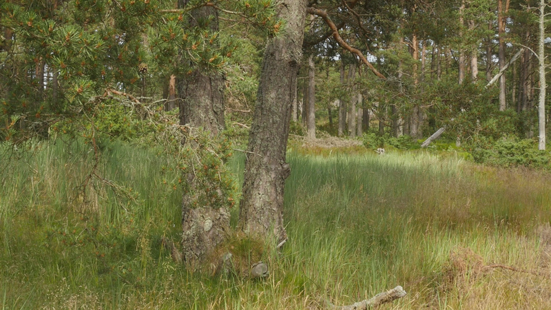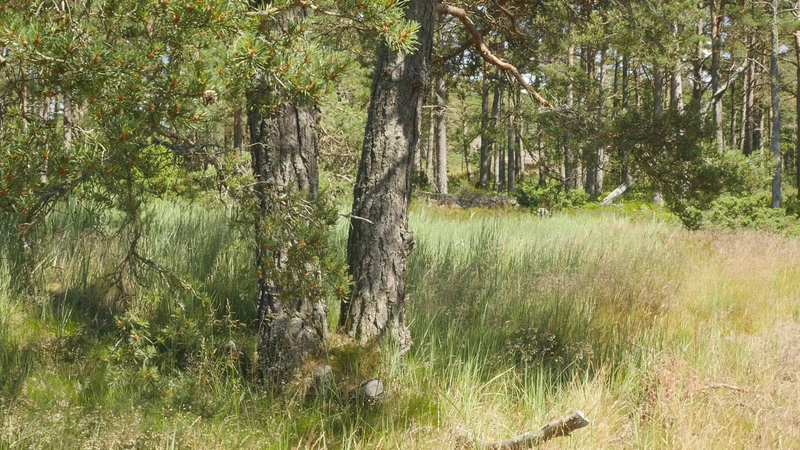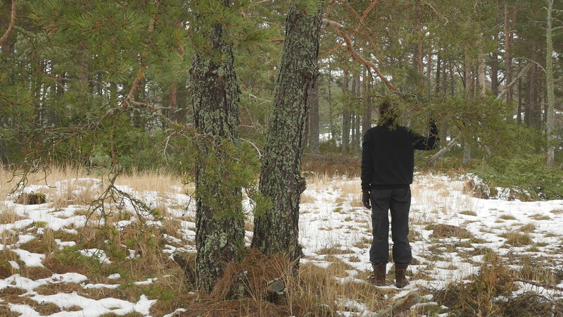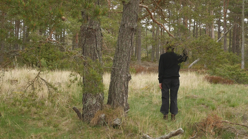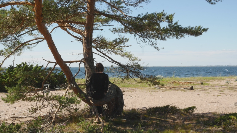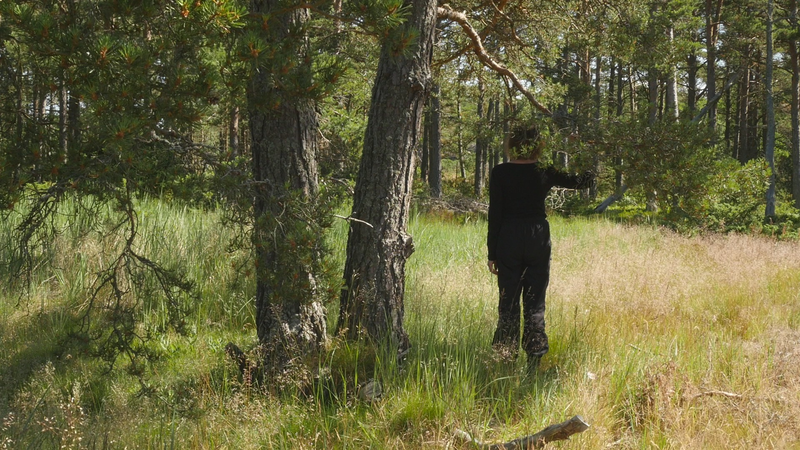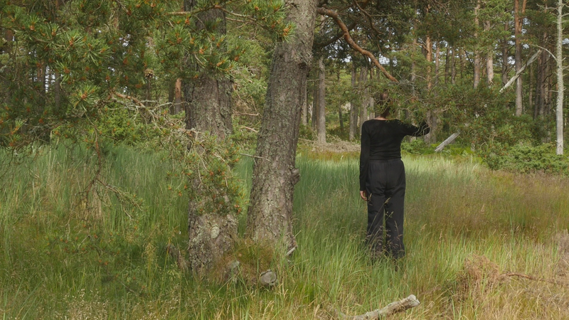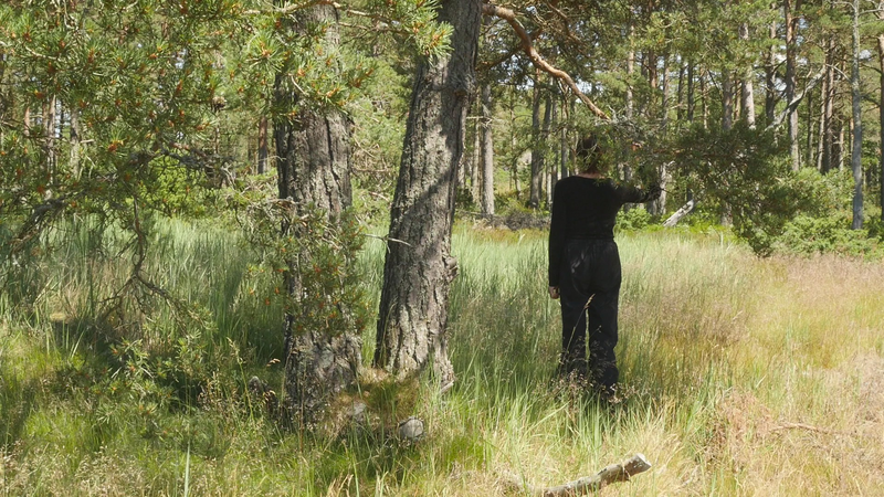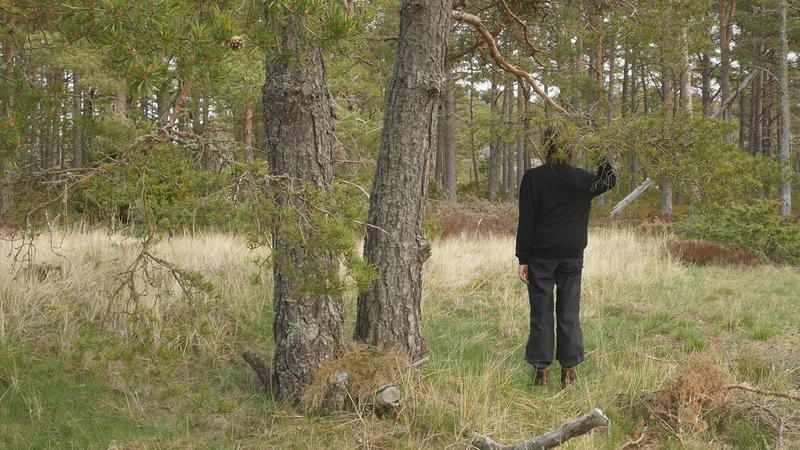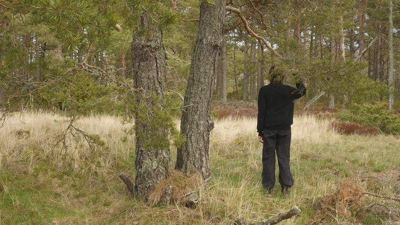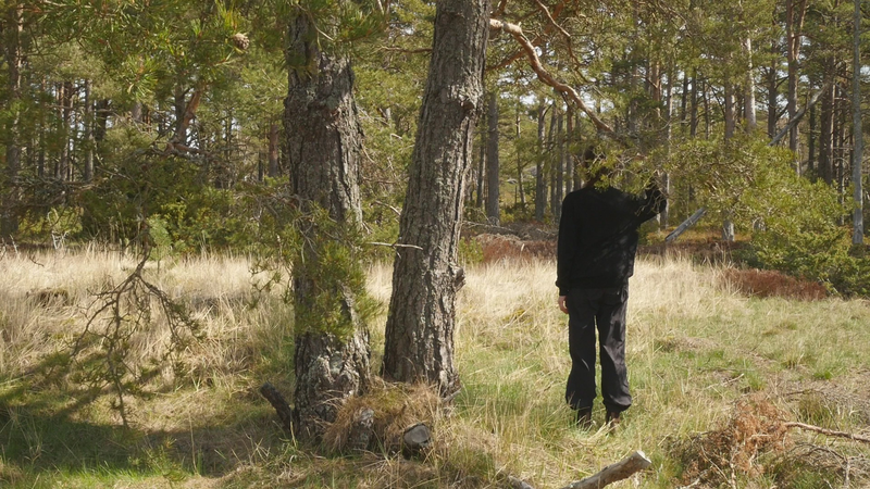 vad roligt att se dig igen. Jag trodde inte att det skulle vara så, så roligt, så, att det skulle kännas så fint att sitta här, på nytt. Jag var ju här i maj, men det var också ett kort besök. Nu är det söndagen efter midsommar den 27 juni, för att midsommarn var så sent i år. Det är väldigt varmt, men det blåser friskt, och jag är lite orolig att mikrofonen som jag talar i egentligen kommer att registrera mest vinden. Och det brukar ju inte låta så bra. Det är skönt med vinden för myggorna försvinner. – Jag försöker undvika att tala ovanpå vindpustarna, men det är svårt att avgöra vad som hörs och vad som inte hörs. Hur som helst så hoppas jag att du har haft det bra, och du ser bra ut som vanligt. Det har varit mycket folk på ön över midsommar, men de tycks rymmas väldigt fint hit, eller så… håller de sig alla till hamnen eller hotellområdet. Och de som vandrar ut på stränderna eller cykelvägarna, de gör det för att få vara i fred. – Den här gången har jag bott på Öres residens, i huset vid sydspetsen, som jag bodde i då jag kom hit första gången. Och jag trivs jättebra. Det är en gammal byggnad från den ryska tiden, bygd för officerare, antar jag, med högt till tak och stora fönster. I det andra rummet bodde ett ungt par som var här för att bekanta sig med residenset och jobbade med en film. Och de var väldigt trevliga, men de åkte iväg idag, och jag märkte hur glad och avslappnad jag blev av att få vara för mig själv, konstigt nog. Men ändå söker jag mig hit till dig, till ditt sällskap. – Kanske den största nyheten som jag kan berätta åt dig är, att det faktiskt ser ut som jag sku kunna fortsätta att besöka dig, eftersom centrum för konstbefrämjande eller vad statens konstkommission nu egentligen heter nuförtiden, preliminärt har beviljat ett stipendium åt mig. Det är litet, och det är inte helt klart ännu, för det behöver… statsbudgeten måste godkännas först, men det är väldigt sannolikt. Du minns kanske att jag berätta åt dig på vintern att jag var orolig över att behöva pensionera mig, att jag egentligen inte ville gå i pension ännu. Och nu behöver jag inte göra det, och det är ju skönt. Det är ju inte bara besök hos tallar, så här som hos dig, som jag skall syssla med, men det är en del av vad jag har tänkt göra. Och det känns väldigt bra att få så att säga godkänt för det. Att det inte betraktas som galenskap utan som ett helt acceptabelt sätt att göra ett slags konst. Det är väl det vi behöver konsten till, idag. Inte så mycket som dekoration eller inredning eller evenemangskultur, även om det också behövs, utan som försök att fokusera på ett annat sätt, att rikta uppmärksamheten på saker som man annars inte skulle tänka på. Just nu känns det i och för sig som om alla skulle tänka på träd och växter, på olika former av liv, förutom djur, som man redan länge funderat över. Jag har lovat skriva en artikel på finska om att uppträda med växter, eller vad förslags utmaningar det innebär för performance-teori eller teaterteori eller dansteori, eller funderingar kring föreställningar, om man tar det som sin uppgift att förstå vad det innebär att uppträda med växter och i synnerhet träd. Jag skriver det till en antologi där det finns många olika områden och skribenter som talar om estetik i relation till miljön, från olika synvinklar. Och det känns ju som en utmaning att kunna ge något slags överblick. Jag brukar i allmänhet skriva mest om mitt eget arbete. Även om jag måste sätta det i ett sammanhang och relatera det till vad andra konstnärer gör eller vad filosofer har skrivit, så är mitt bidrag ändå det, de erfarenheter jag har av att pröva på det själv. Och jag vet inte om det fungerar i den här artikeln. Nå, det är ju lite fånigt att fråga dig om råd, men å andra sidan vem annars skulle kunna ge mig bättre råd. Om jag skulle förstå ditt sätt att kommunicera, skulle det ju vara härligt att få veta direkt från dig hur du tycker att vi mänskor borde uppträda med träd. Men tyvärr har jag ingen sådan extra känslighet. Och jag försöker undvika att fantisera för mycket. – Jag har lyssnat på inbandade föredrag från en konferens som heter nånting i stil med Mot ett nytt sätt att umgås med växter. Och det har ju varit många olika, väldigt olika infallsvinklar. Men den jag senast lyssnade på var en biolog som jobba med växt intelligens och argumentera för att man skall använda ordet intelligens, som många fysiologer tycker att är helt fel, eftersom växter inte har en hjärna. Men intelligens och hjärna är ju inte beroende av varandra, hos mänskan kanske, men inte nödvändigtvis hos andra varelser. Och i sitt föredrag påpeka den här spanska forskaren att det ändå är viktigt att vi inte tolkar växternas sätt att förhålla sig till sin omgivning utifrån ett snävt mänskoperspektiv, utan vi borde försöka förstå vad det är som är viktigt för dig, vilka olika saker som du blir tvungen att ta ställning till när du fattar beslut och avgöranden i fråga om hur du skall växa och hur du skall börja dig och vilka ämnen du skall uppta och så vidare. Så för att respektera din agens, din förmåga att fatta beslut, att bedöma situationen och så vidare, så borde jag känna till mycket mera om hur du upplever världen. Men när jag nu sitter här, även om jag inte vill fantisera så hemskt mycket, så är jag ju inte en biolog eller forskare, på det planet, och inte en filosof heller, så jag litar på mina sinnen och på någon slags känsla då. De är ju inte så tillförlitliga, det får jag erkänna, men… ja, vad kan jag säga. Att jag blev så glad å att se dig, jag kände sån värme för dig, att jag kan bara hoppas att jag skulle på något sätt kunna erbjuda dig någon form av glädje i gengäld. Hur det skulle ske, det vet jag i