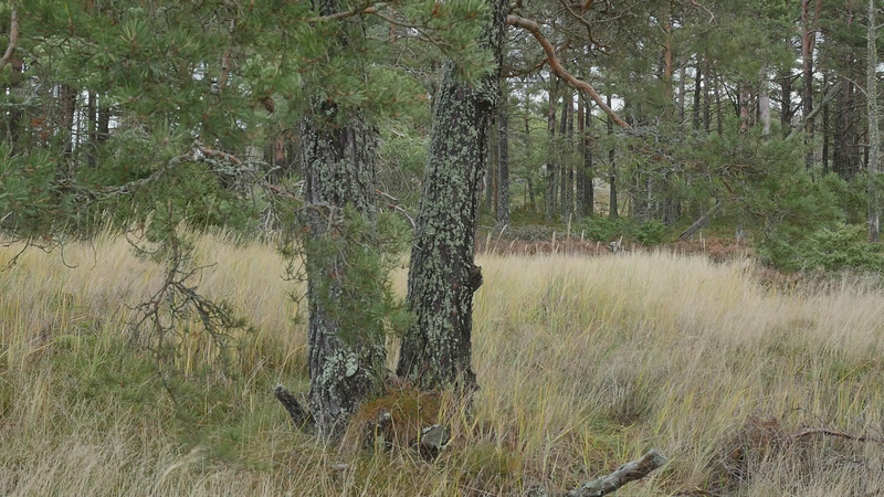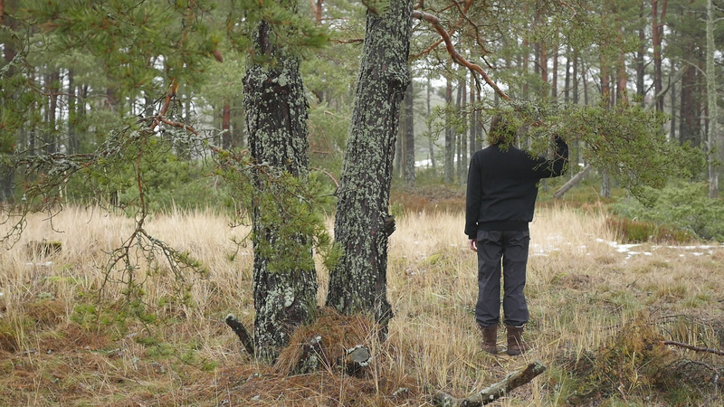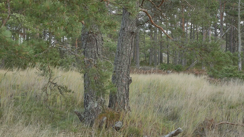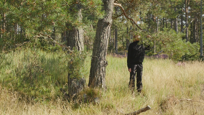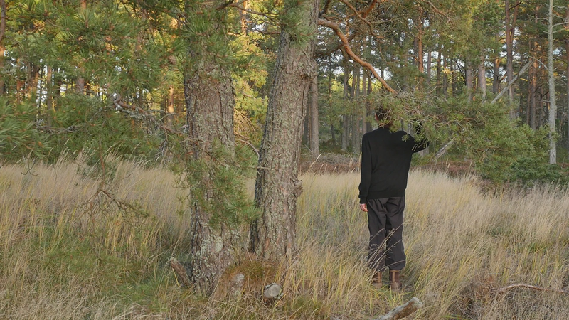Vad roligt att se dig igen. Det är härligt väder, nästan ingen vind, och slutet på sommaren, den sista augusti. Senast vi sågs var det vid midsommar, tror jag, is slutet av juni i varje fall, så det är nästan två månader sen sist. Det är ovanligt tyst, på grund av vinden, eller avsaknaden av vind. Jag läste om skogen, skogen efter oss, en bok på finska. Och där var en detalj som slog mig, helt konkret. Nå, slog mig, men alltså stanna i minnet för att den hade verkan på mig. Och det var den detaljen att de flesta tallarna i vårt land får aldrig leva till vuxen ålder, eller de får leva till vuxen ålder, men de fälls genast när de uppnått en viss slags mannahöjd, alltså när de blivit vuxna. Men de får aldrig uppleva ett liv som vuxna och framför allt inte uppleva ett liv där de åldras. Om ni kan, som de tallar som växer här, om ni kan leva till maximalt femhundra år eller åtminstone 3 - 400 år, i synnerhet i norr, så då är det ju ganska grymt att avliva er i sådär sextio års ålder. Jag tänker mig att, om hela min generation skulle ha avlivats kring tjugo, tjugofem… Det är ju det som sker i krig, unga män – eller skedde åtminstone tidigare. Unga män skickades ut för att ta livet av varandra. Men att man ska göra det i fredstid. Nå, jag vet att det kallas odling, och det gör man ju med olika former av odling, också med broilers. Men det är ändå ledsamt att tänka. Tallarna hinner liksom inte bli individer. Det är därför du är så fin här, och alla dina grannar också på Örö och på många andra öar, varför inte i andra nationalparker också, för att ni får leva ut ert liv och bli det som ni är, på något sätt uttryck för vad miljön har erbjudit er. Så ni har anpassat er till det som livet har kommit med. Nu niar jag ju inte dig, jag talar om er tallar i allmänhet, men jag borde kanske tala om dig, för du är ett fint exempel på det, med din tudelade stam som sen dessutom är delad i två tjocka grenar, där jag sitter på den ena av dem. Och som man kunde tänka sig att är ett slags deformation, men som är ett resultat v livet förstås. Nå, det var ju trist att berätta åt dig om alla dina landsmän eller artfränder som lever på plantagerna och avlivas där. Och då får jag ju säga att jag är själv med som skogsägare i ett dödsbo, så att jag kan inte alls skryta med att ha någon moralisk förkörsrätt här. Jag deltar också i skogsodlingen. Och på sätt och vis så förstår jag ju det, att människor odlar olika saker för att dra nytta av växter och djur och så vidare, men det är ändå… det borde finnas någon balans. Därför är det så viktigt att det blir mer och mer skog som får vara skog och inte en skogsåker, en trädåker. Att det sen, det finns folk som säger att det inte går att återskapa en skog. Om den en gång har fällts kommer det att ta tusentals år för den att bli en riktig gammal skog. Men bara det att låta träden leva sitt liv till slut, det tycker jag är så fint. Och då betyder det ju att de, i synnerhet tallarna blir ju ofta stående. Många granar faller omkull, med sina rötter längs med marken, men tallarna blir ofta stående när de är döda och multnar långsamt eller torkar till de där gråa fina skulpturerna som sen… på finska kallas de ”kelohonka”, jag vet faktiskt inte vad de är på svenska. Det finns några här på Örö också, även om det nog är väldigt städat. Det här är liksom en naturpark som vårdas. Och som vi har talat om tidigare så dödas ju tallar här också, helt enkelt för att försöka håla marken öppen. Ja, vad annat kan jag berätta? Jag kan ju berätta att jag kom hit nu för ett par dagar, endast några dagar, för att uppträda med en annan tall som står nära hotellområdet eller det gamla kasernområdet. Jag skall gunga i den och försöka gunga i takt med en projektion av ett gungande som vi spelade in vid midsommar, där jag bad förbipasserande eller sommargäster att komma och gunga i gungan och så spelade jag in det. Och nu har jag gjort en video som jag skall projicera tillbaka på tallen. Och det skall ske då först klockan nio på torsdagen så att man hoppeligen ser något av den där bilden. Jag skall spela in det hela också på video för det är ju inte så många här, åskådare, kan jag tänka mig, men några eventuellt. Jag tror att den tallen är äldre än du, åtminstone är den väldigt mycket större. Men för att den växter där på ett mer skyddat område, på en, ja, bördigare plats, och med mindre vind, så kan det ju hända att ni är av samma ålder trots att du är mindre. Jag har också tänkt se ifall jag skulle kunna träffa några nya tallar här på ön. Det betyder inte att jag inte skall komma tillbaka till dig igen när jag kommer nästa gång. Men för att lära mig mer om er, på sätt och vis. Hur som helst, ja, vad annat kan jag berätta? Jo. jag var med på en konferens om konstnärlig forskning och pratade om att skriva brev till träd tillsammans med träden eller hos träden. Och då nämnde jag bara kort i förbifarten att jag också har prövat på det här att tala med träd. Men det är bara med dig jag har gjort det försöket. Du är den enda tall som jag inte har skrivit till utan som jag försöker tala till och banda in det vad jag pratar. Då blir det ju lite, tja, pladder ibland. Så kanske jag skall sluta pladdra, och låta dig fortsätta att njuta av de sista sommardagarna. Men tack för att jag fick sitta här hos dig igen. Och ha det så gott. Sköt om dig.