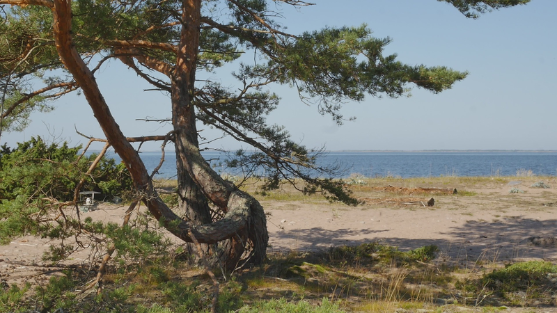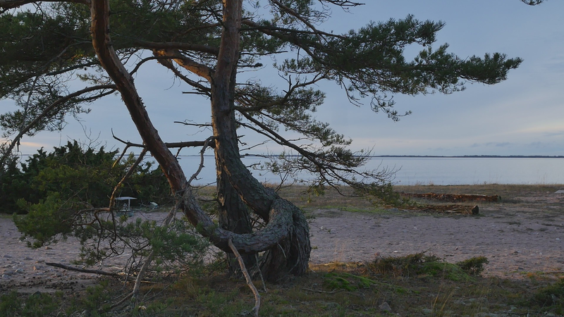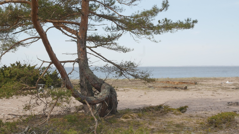 Roligt att se dig igen efter en så lång paus. Vi träffades senast I slutet av februari, och då var stranden täckt med snö. Nu lyser sanden I solen. Jag såg just en huggorm ringla sig I sanden och den gömde sig snabbt in i en tova med enris, som en ö mitt I sanden där den var gömd. Jag väntade en stund för att se om den skulle komma ut från andra sidan, men nej, den stanna där, för den ville inte ha med mig och göra. Det förstår jag, och jag tycker… det är ju bra, att den undviker mig istället för att anfalla. Det slog mig, kära tall, att du ju inte har den chanson. Jag kommer till dig och sätter mig på din stam och är jätteglad att se dig. Men tank om du inte är så glad att se mig. Du kan inte ringla bort som huggormen… Man skall kanske inte jämföra olika sätt att reagera. Du har ju din tjocka bark som skyddar dig. Det är som att du kan stänga öronen om du inte vill lyssna på vad jag har att tala om för dig. Ja, jag läste eller bläddra i en artikel nyligen som handlade om tallar. Det var en vetenskaplig text som analyserade olika tall arters utveckling i historien eller snarare i förhistorisk, geologisk tid. Och den beaktade liksom både ekologiska frågor och genetiska frågor. Och varför det var viktigt var för att det var en studie, en global studie i biodiversitet eller naturens mångfald och hur den kan komma att påverkas av klimatförändringen eller uppvärmningen. Och skribenterna hade kommit fram till att det var i mellanzonerna, ”middle altitudes”, där den största delen av de olika tall arterna hade vuxit fram. Och först förstod jag ju inte vad det handlade om, men det där med ”mid altitudes”, det handlar om höjdskillnaderna i bergen. Och här i Finland så tänker vi ju i norr och syd, vilka arter klarar sig längre söderut, och vilka drar sig norrut när det blir varmare, medan på andra håll så handlar det om bergen, så att det som hos oss växer norrut, det växer högre upp i bergen. Det hade jag ju inte tänkt på. Men det spännande ur din synvinkel, eller som, varför jag berättar det här åt dig är att det visade sig att tallar växer överallt på jordklotet, på alla håll, och i många, många olika arter, och de har, ni har funnits här länge, väldigt länge. Jag trodde ju att det var de stora sibiriska skogarna och kanadensiska skogarna kanske, som innehöll mest tall, men det finns tall i Australien och i Afrika, överallt finns det tallar av olika slag. Jag har förstått eller åtminstone inbillat mig att alla tallar som lever i Finland hör till samma art, men det kan ju hända att det finns lokala varianter av olika slag, det har jag inte tagit reda på. Kanske det finns en speciell Örö variant? Nå, det här är ett typiskt mänskligt sätt att tänka på saker, att klassificera och namnge, och det är kanske inte det viktigaste. Men jag tillbringade hela april månad uppe i Karlö, Hailuoto, högt uppe i Bottniska viken, och där är det ju fullt med tallar också. Delvis är de annorlunda, men sen har de också tallar som de kallar för tarri, som är ett slags martallar fast gamla och tjocka. Men i princip är det också samma art av tall kan jag tänka mig. Ni är ett stort släkte. Men jag vet inte om det är viktigt för dig här, nu. Snarare är det väl så att det är bra för dig att ha en massa plats omkring dig, men ändå ha släktingar på nära håll. Och det växer ju många olika slags ris och snår och enris och mossa och olika svampar, det fanns en massa murklor inte så långt härifrån. Jag stötte också på en artikel från Suzan Simard, en forstvetare, kanadensisk kvinna, som är nu väldigt omtalad för att hon har skrivit om ”The Mother Tree”. Men hon skriver också om samarbetet träd emellan, och att vissa trädslag trivs ihop för att de tycker om samma svampmycelier och så vidare. Jag undrar vilka dina favoriter är? Men ni har levt här så länge på Örö, i de här omständigheterna, så ni har säkert utvecklat ett bra samarbete med åren. Vad mer kan jag berätta åt dig? Tanken var ju att jag skulle tala om mina egna sorger eller bekymmer eller kanske glädjeämnen, men jag vet inte om jag har några akuta just nu. I och med att det blir vår och i och med att koronakrisen så småningom börjar avta – ja, jag har fått min [sic] första vaccin, det är härligt – och i och med att, ja ljuset har återvänt och värmen också återvänder så småningom, så blir vi ju alla mer optimistiska och glada och fulla av hopp. Man kan riktigt känna det när man går i skogarna här att alla skyndar sig för att få ut sina blad för att kunna börja med fotosyntesen och… och krypen kommer fram. Det var inte långt härifrån som det var en massa spindelväv som redan höll på att vävas och så vidare. Det är härligt att vara bland annat liv, insåg jag plötsligt efter att ha varit i stan igen, att vara mitt bland liv. Också huggormar, trots allt. Men, förlåt att jag säger såhär, det är ju inte livet bara i sig som drar mig till dig, utan just för att du är så speciell och växer på en speciell plats med en härlig utsikt över havet och så med en sån särskild böjd stam, som är som skapt för alla mänskor som vandrar här förbi att sitta och vila en stund. Hur skall jag säga, jag behöver inte ens tänka mig att du har gjort det med avsikt, den fungerar som en inbjudan, oberoende av, så tack för det.